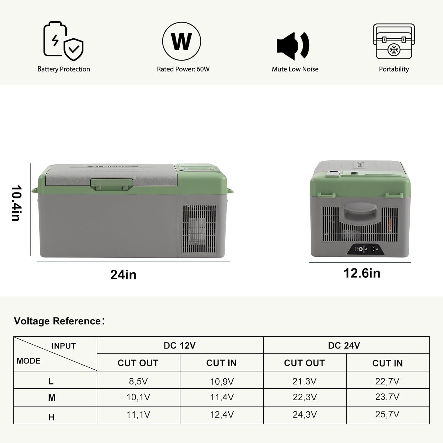 - Energy Efficient β Low power consumption works seamlessly with 12/24V DC car outlets or 110-240V AC for versatile use.Different cooling modes(MAX&ECO) can be adjusted as needed.