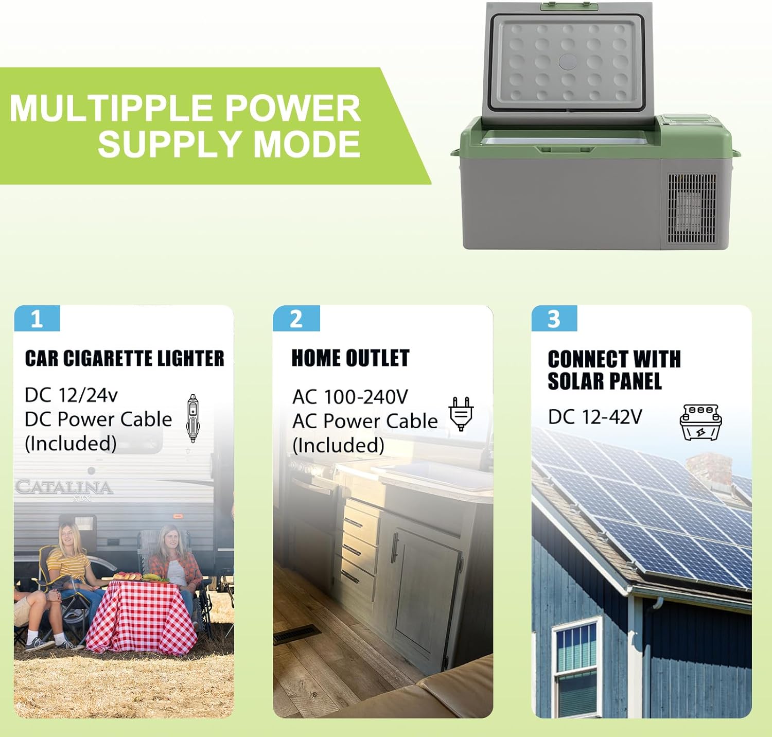 - Powerful Cooling β Cools down to -4Β°F (-20Β°C) and keeps contents fresh for hours, whether plugged into your car,solar panel or at home.