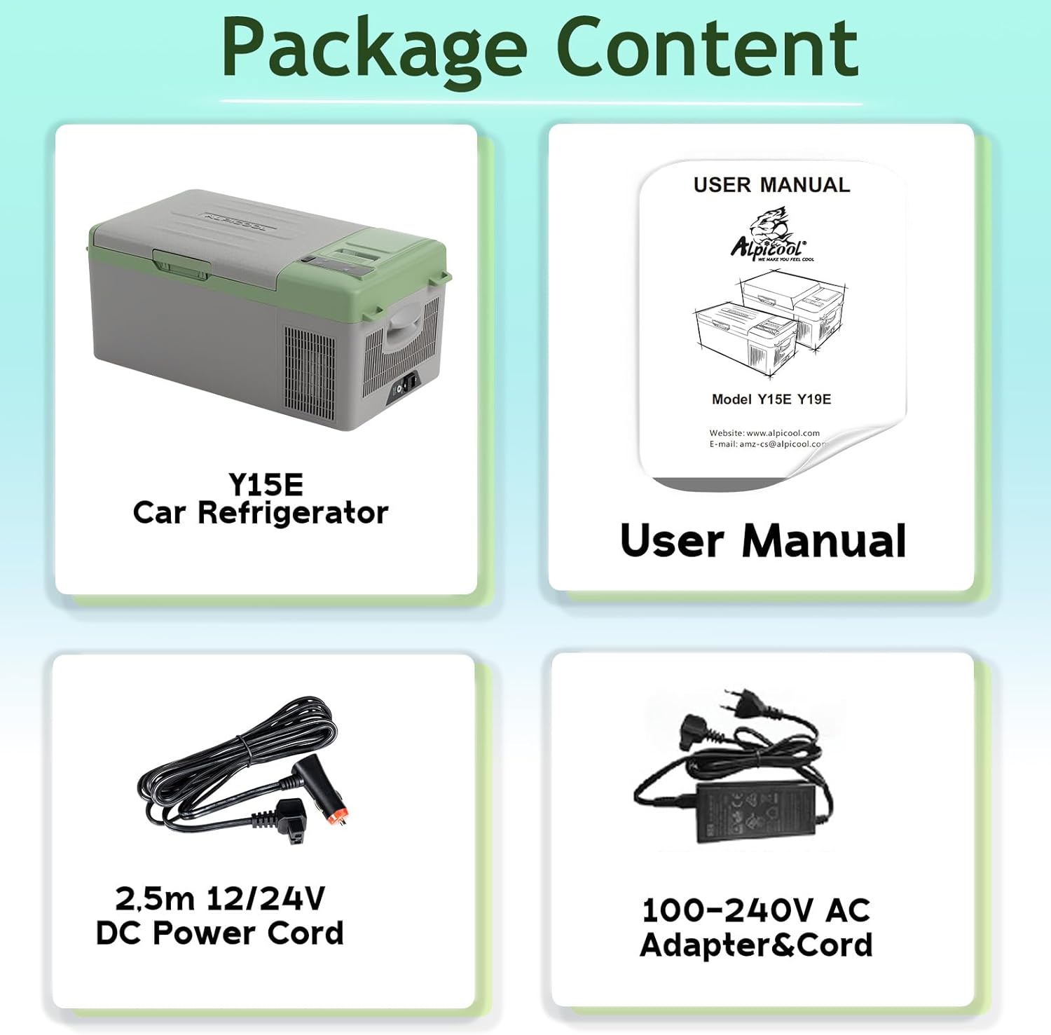 Alpicool Y15E Portable Fridge 12 Volt Car Refrigerator 17 Quart Freezer for Fishing, Camping, RV, Truck, Boat-12/24V DC