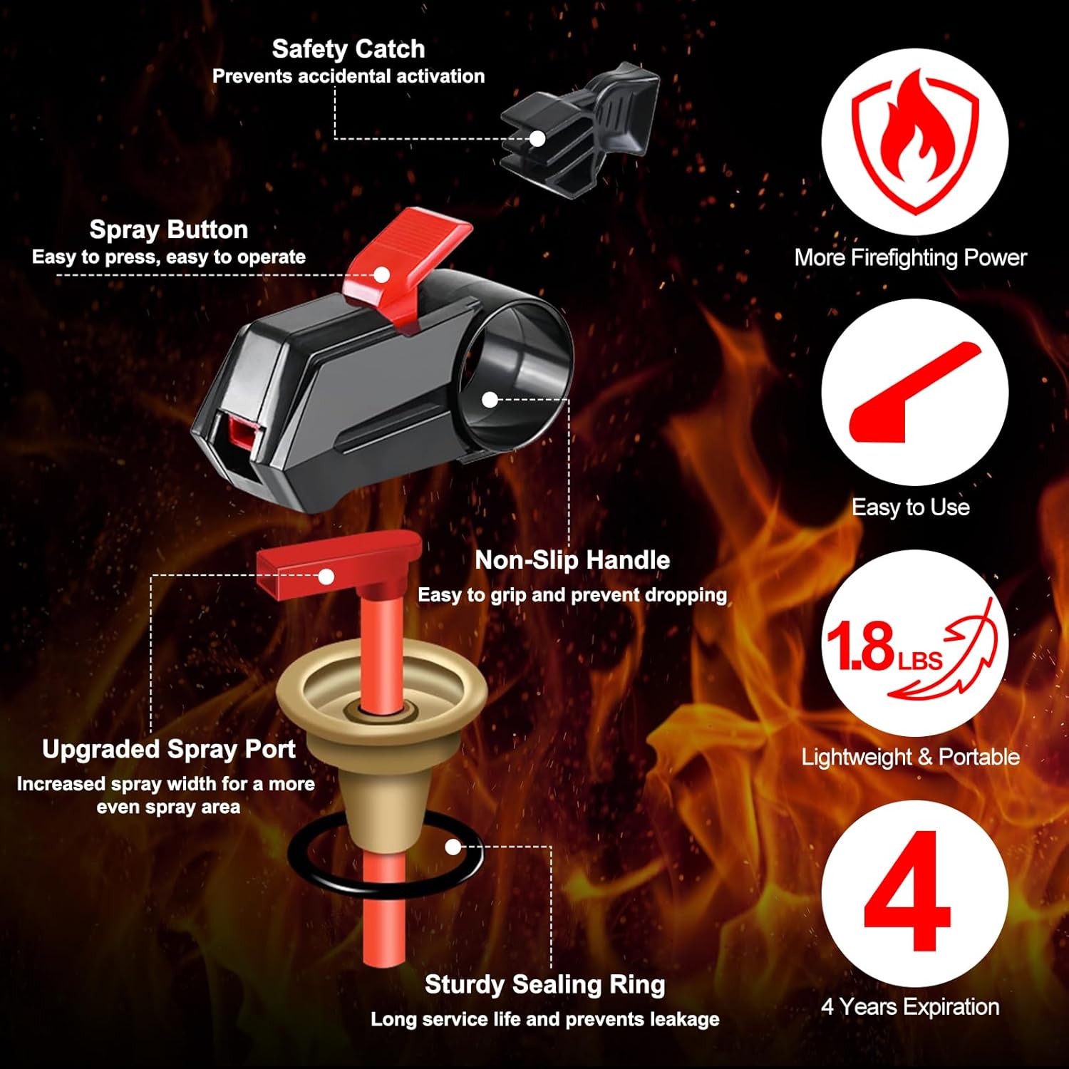 - Designed for Small Fires: Enhanced fire suppression with a powerful 600g dry chemical formula that outperforms traditional ABC models, quickly neutralizing kitchen fires, car fires, and electrical hazards for a faster, cleaner response