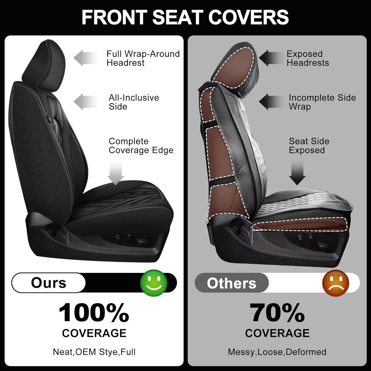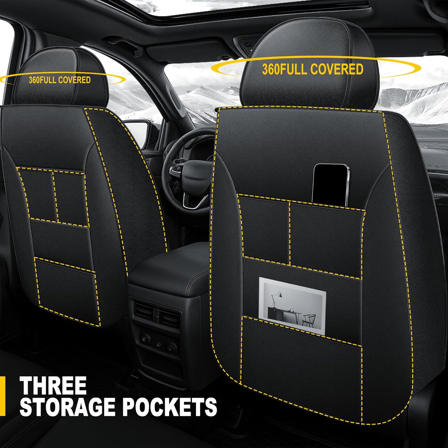 - 【New Upgrade】Compared with other seats, our front seat covers is a 360 ° full coverage and 4 zippers design, making the entire seat covers more suitable for the original seat.Back of the front seat cover is designed with 3 pockets for storing books, snacks, tissues, etc