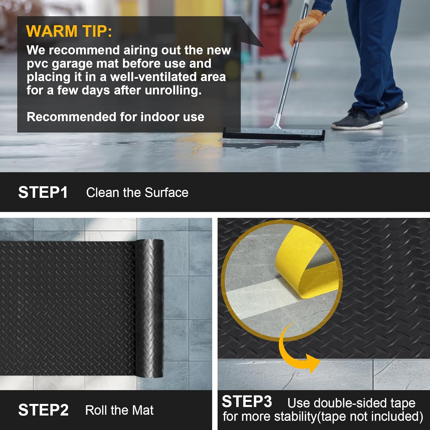 - Versatile for Any Space: Perfect for garages, workshops, gyms, and basements. Protects floors in homes, warehouses, and commercial spaces while enhancing aesthetics.