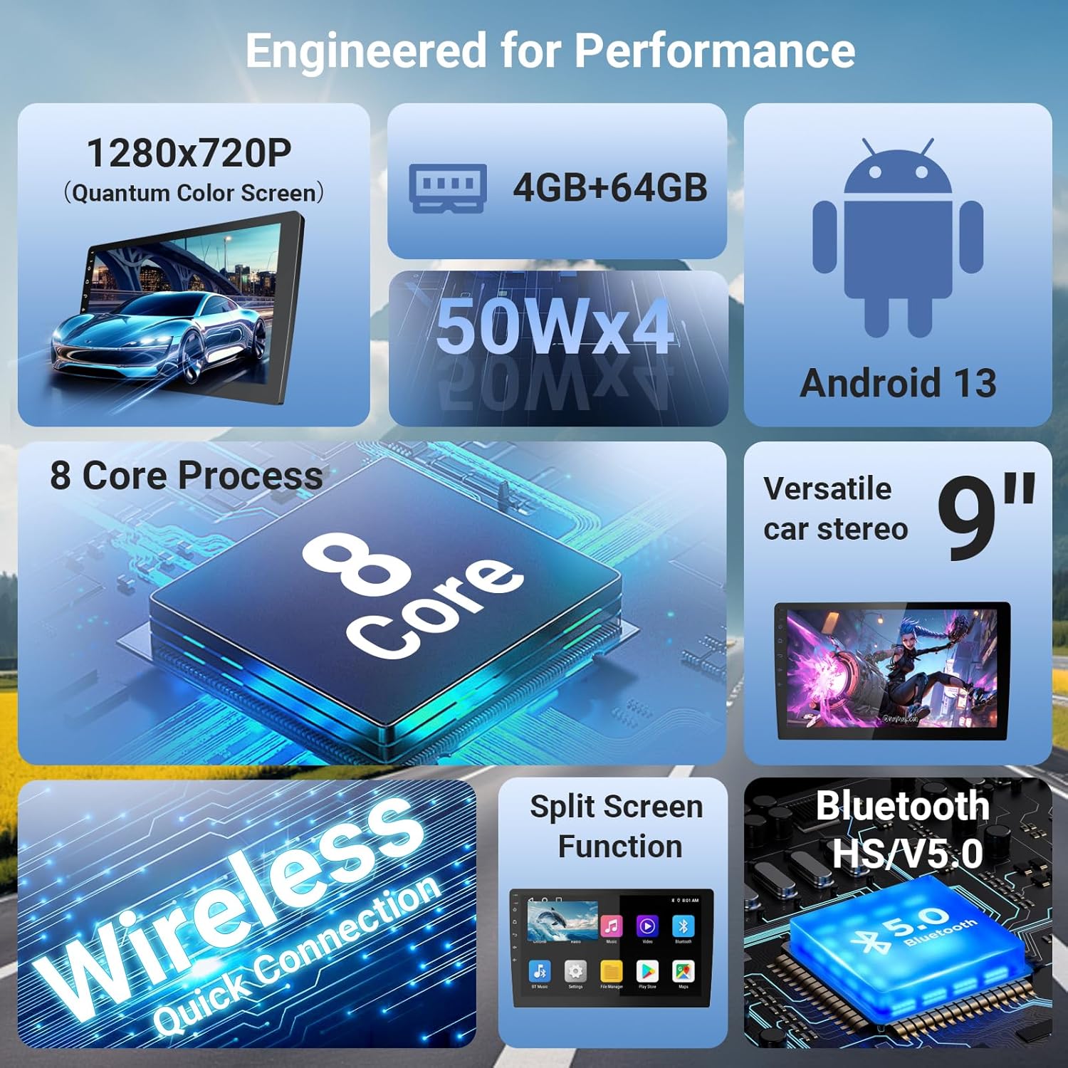 - 【Powerful 50W x 4 Output & GPS Precision】Delivers robust sound for CarPlay entertainment, while built-in GPS and network hotspot support ensure accurate, real-time navigation overlays and traffic updates.Stay connected with Bluetooth 5.0 for hands-free calls, music sharing, and internet tethering,