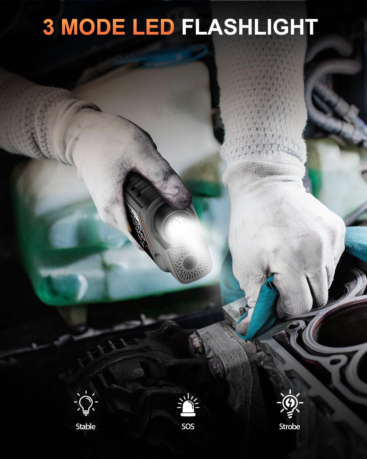 - All-in-1 Emergency Power--The Car Battery Unit Jumper Box combines a 1500A peak starter, 150PSI air compressor, rechargeable batteries, and a 3-mode flashlight to easily respond to roadside emergencies. Compact and versatile for daily driving, outdoor adventures and long drives.