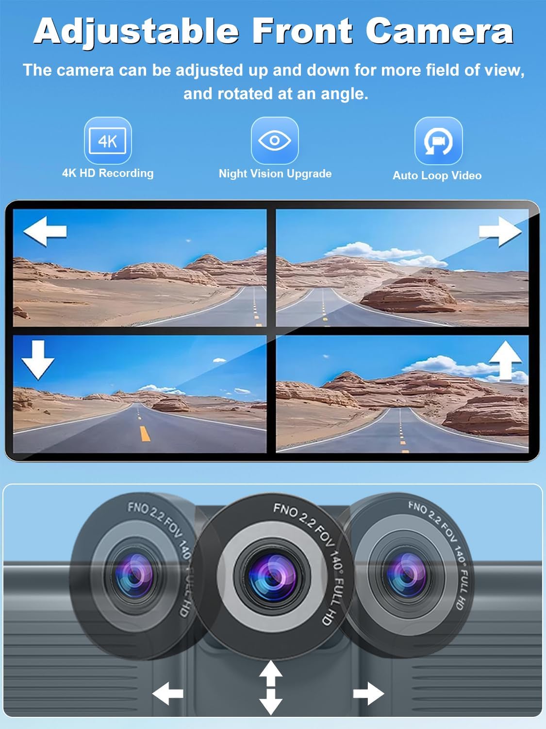 - 【4K Ultra HD Dash Cam with Loop Recording & G-Sensor】Drive with confidence with apple car play's front-facing 4K camera with loop recording and collision detection G-sensor. Capture ultra-clear footage of your journey, automatically saving critical moments during impacts. The pre-installed 64GB memory card ensures ample storage, while WiFi connectivity lets you instantly download and share footage via an app on your smartphone.
