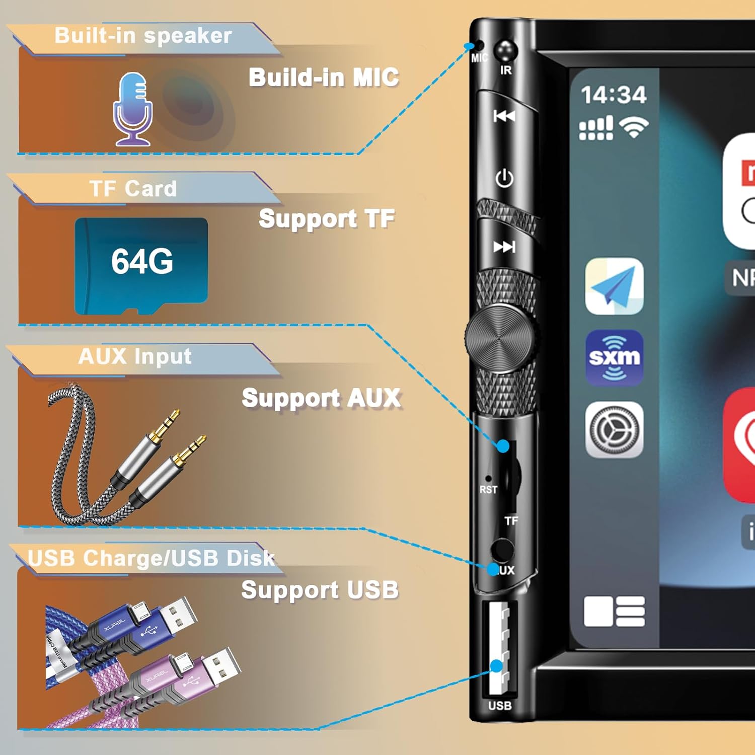 - Steering Wheel & Remote Control Support β Comes with a steering wheel controller and IR remote, allowing easy access to volume, music, and calls while driving.
