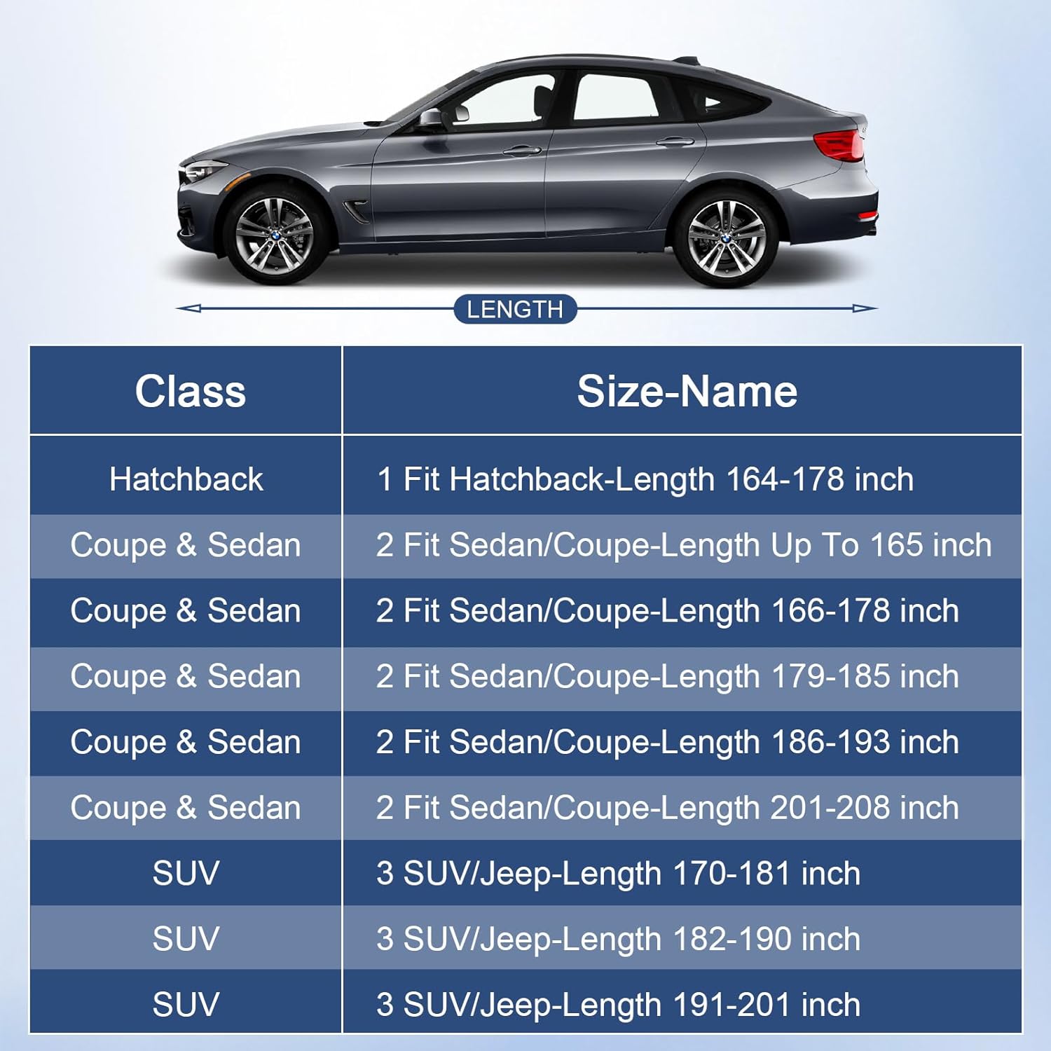 - 【Precision Fit: Tailored Compatibility】Molebt car cover is designed for Hatchbacks with lengths between 164 to 178 inches. Universal fit Toyota Corolla, Mazda 3, Ford Focus, Hyundai Accent, Subaru Impreza, Chevrolet Trax, Honda Fit, Nissan Leaf, Hyundai Veloster, Volkswagen Beetle, Mitsubishi Mirage, etc. Note: Please confirm your vehicle type (Hatchback, Sedan, Coupe, or SUV) before purchase to ensure the perfect fit for your car.