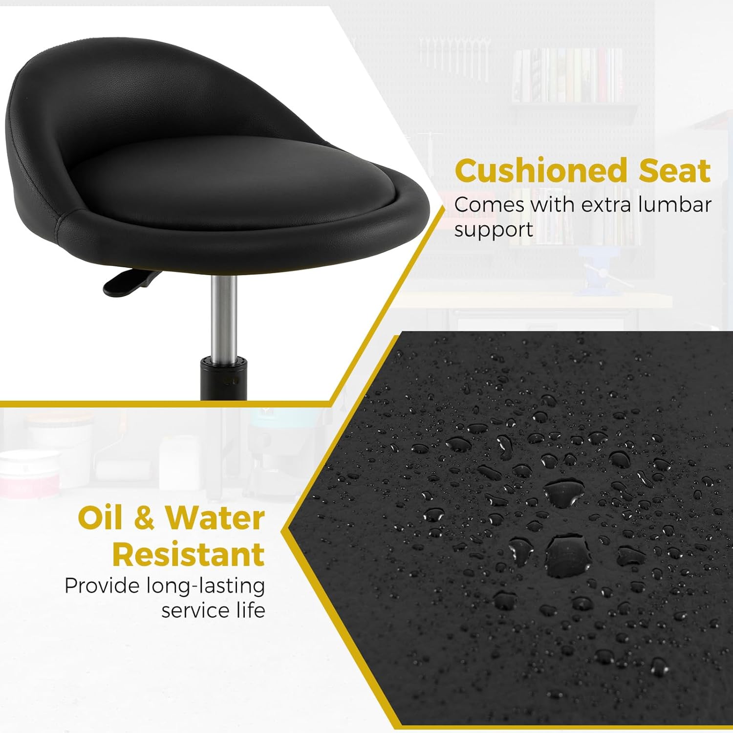 Mechanic Stool, 350 LBS Capacity Rolling Shop Stool with Lockable Wheels, 2 Magnetic Tool Trays & Padded Seat, 20"-25" Height Adjustable Workshop Chair Creeper Seat for Garage, Auto Repair