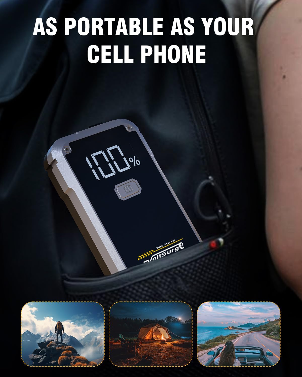 - HUMANIZED DESIGN & LCD DISPLAY - The VoltSurge Battery Jumper Box is equipped with a digital LCD screen to display the battery status. Compared with other devices that don't have an LCD screen but only an indicator, you can check the battery status and remaining charge more intuitively