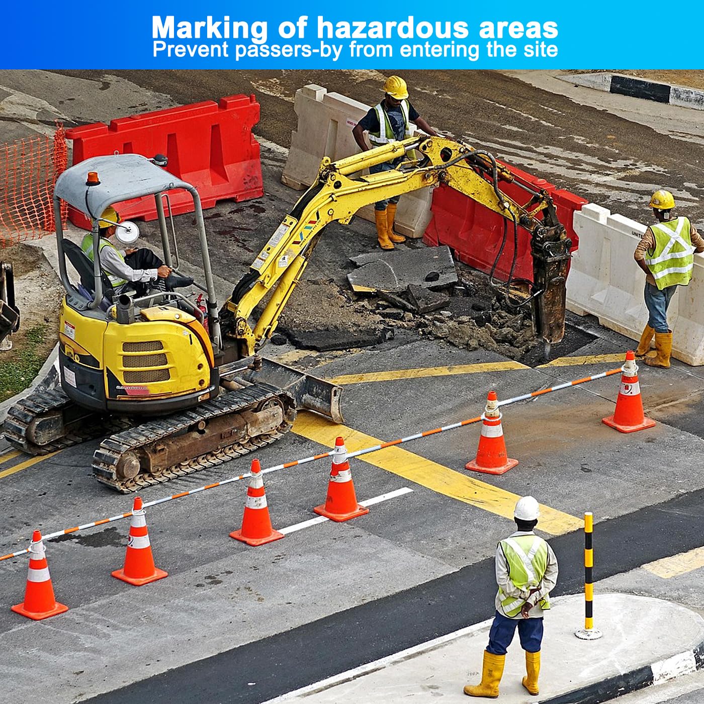 - Versatile Applications——Ideal for road construction, parking lots, school zones, and event management, this cone bar helps define boundaries and ensure safety.