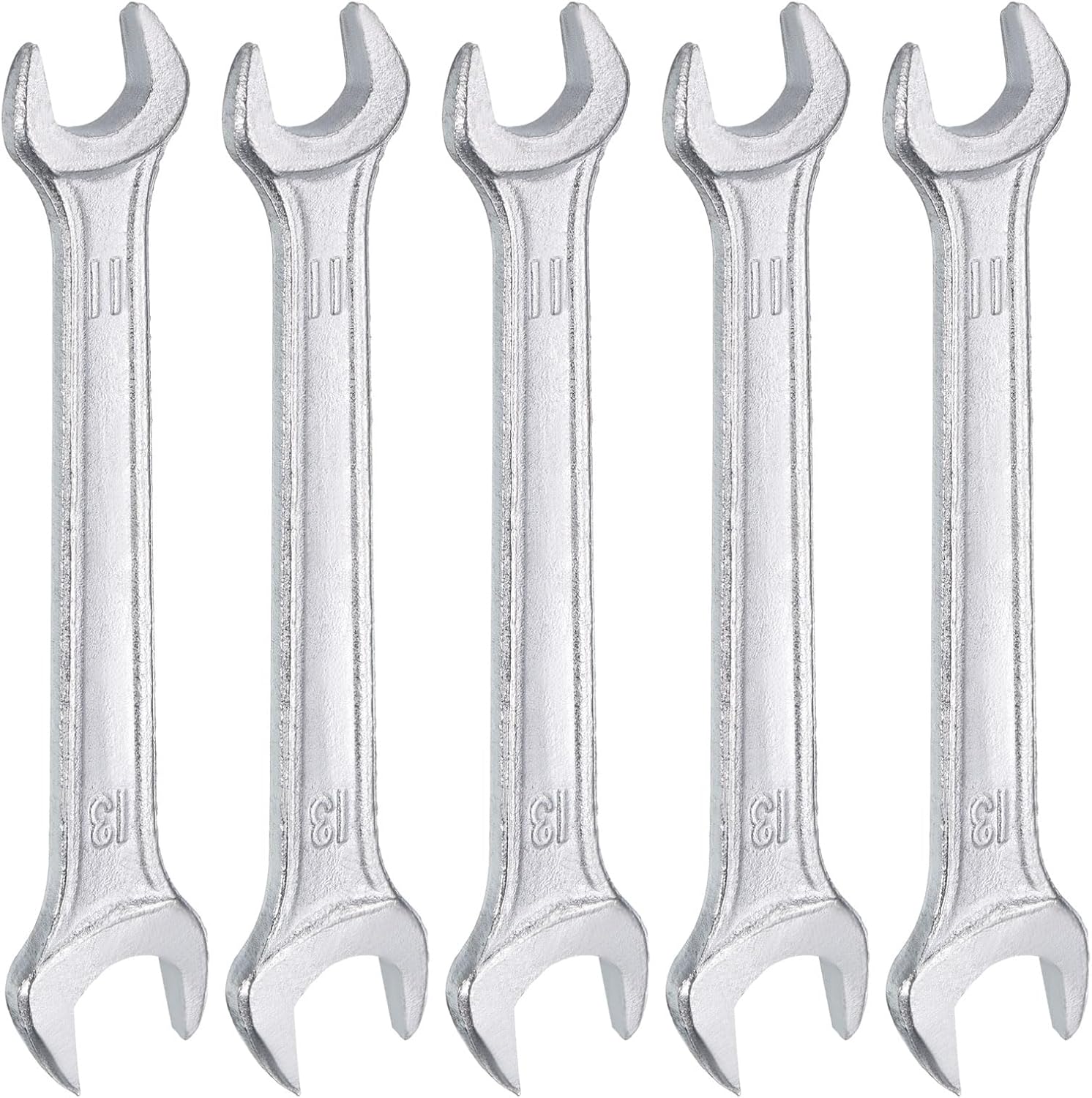 HARFINGTON 5pcs Double Open End Wrench 11mm x 13mm Metric 15 Degree Offset Angle Small Flat Head Wrench Galvanizing Open Ended Spanner for Automotive Repair Furniture Assembly