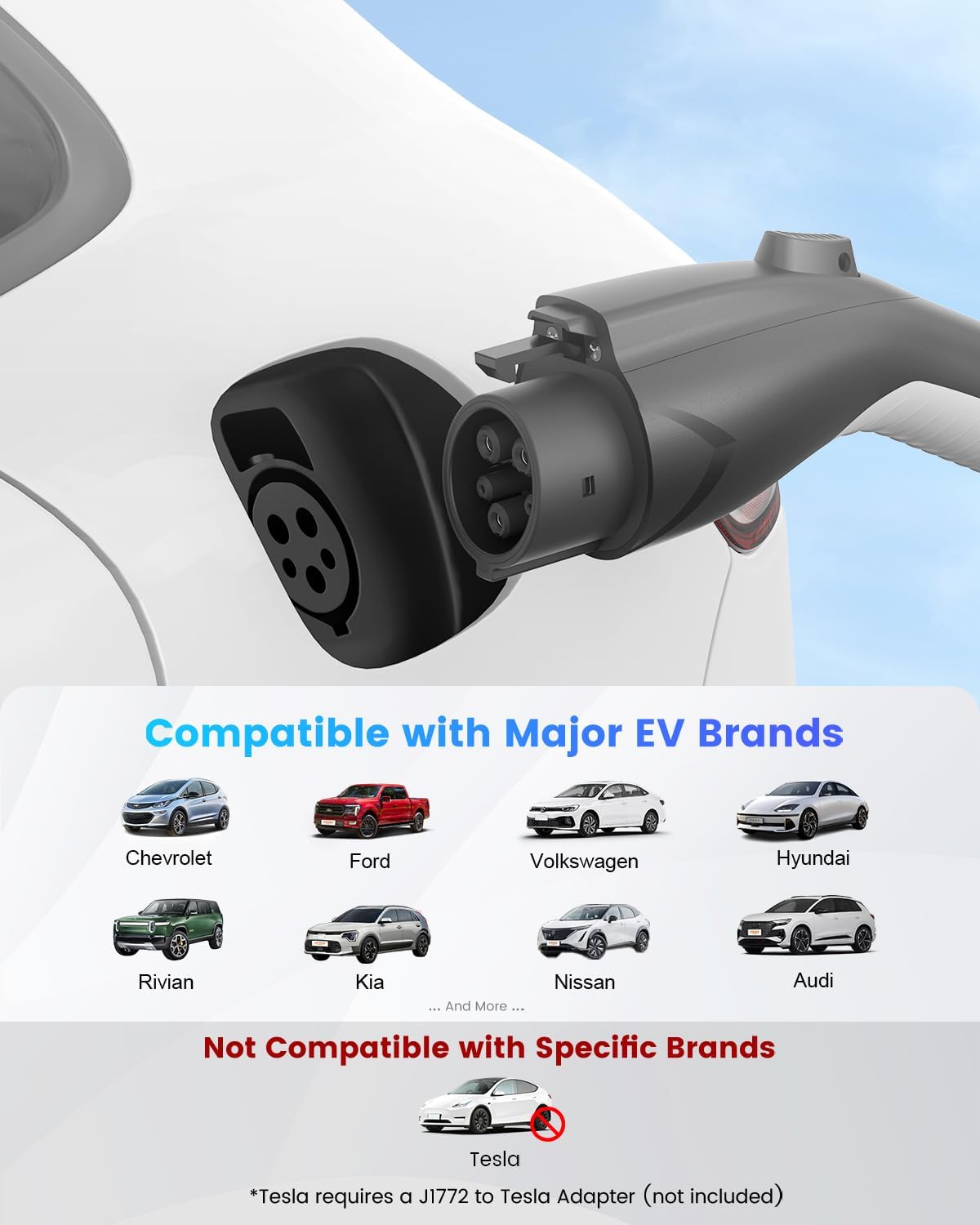 - Plug & Charge with Home Dryer Outlets NEMA 14-30 β Fits Most EVs Except Tesla. EVDNACE 24A LEVEL 2 Charger connects directly to standard 240V NEMA 14-30 dryer outlets, while avoiding other common 120V/240V outlets like 5-15, 5-20, 6-50, or 14-50 (plug adapter needed). This J1772 Charger powers popular Chevy Bolt EV, Ford Mustang Mach-E, Hyundai Kona EV, and most J1772-compatible vehicles. Tesla charging requires a separate J1772-to-Tesla adapter(sold separately).