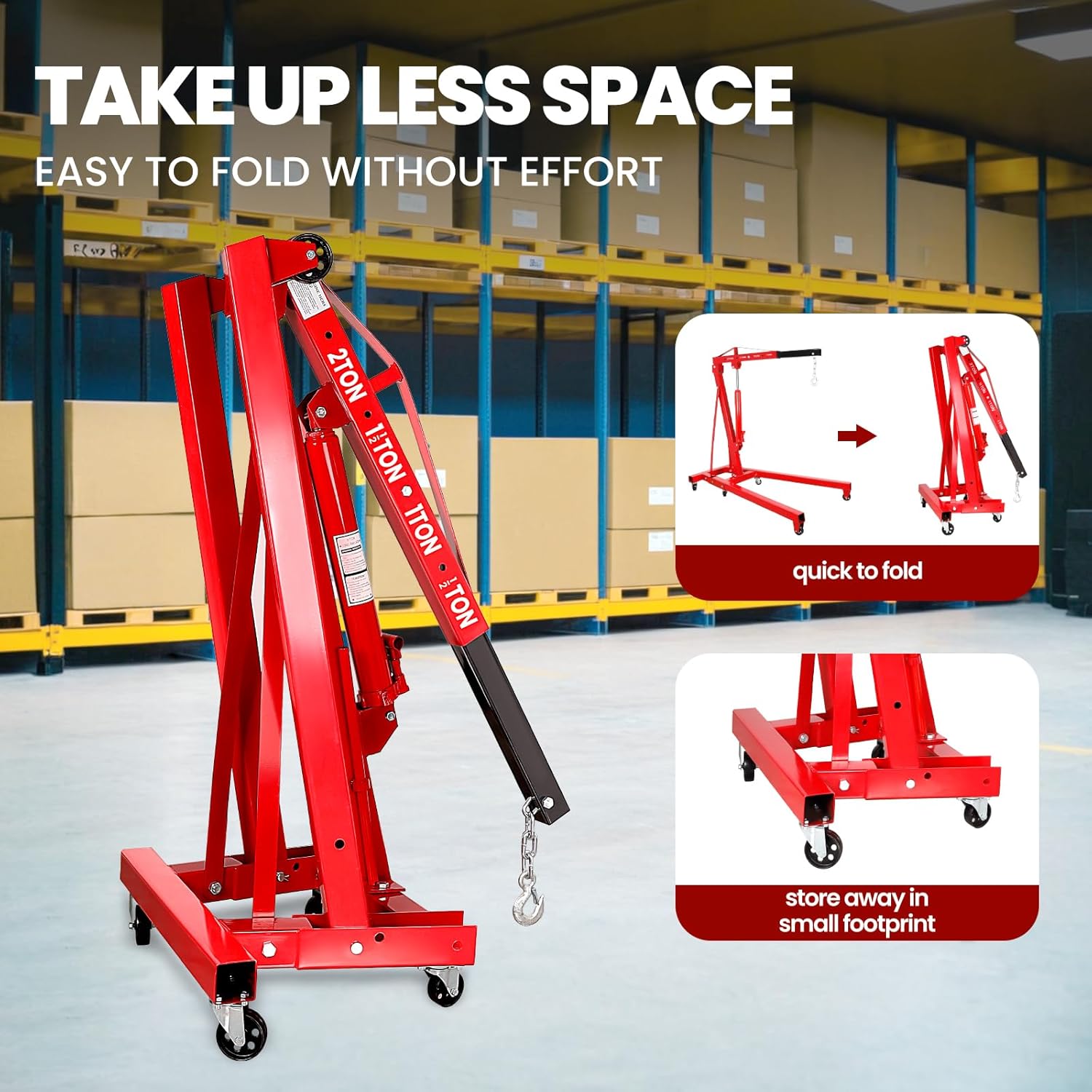 - 🧲 【Space-Saving Foldable Design】 Collapsible frame transforms this Cherry Picker into a compact storage solution without sacrificing 2 ton(4400lbs) lifting power. Perfect for workshops with limited space.