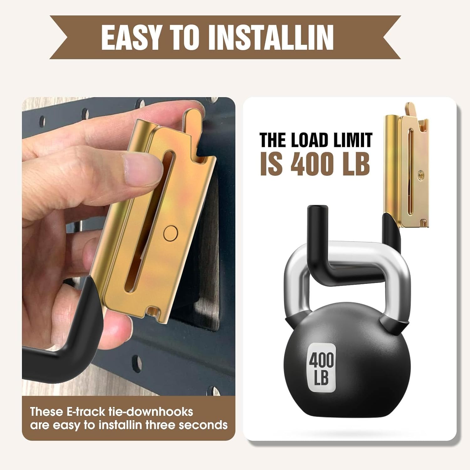 - Easy to install: The E-track J-hooks are spring-loaded, just press the lever on the E-track J-hooks and insert into the E-track or X-track