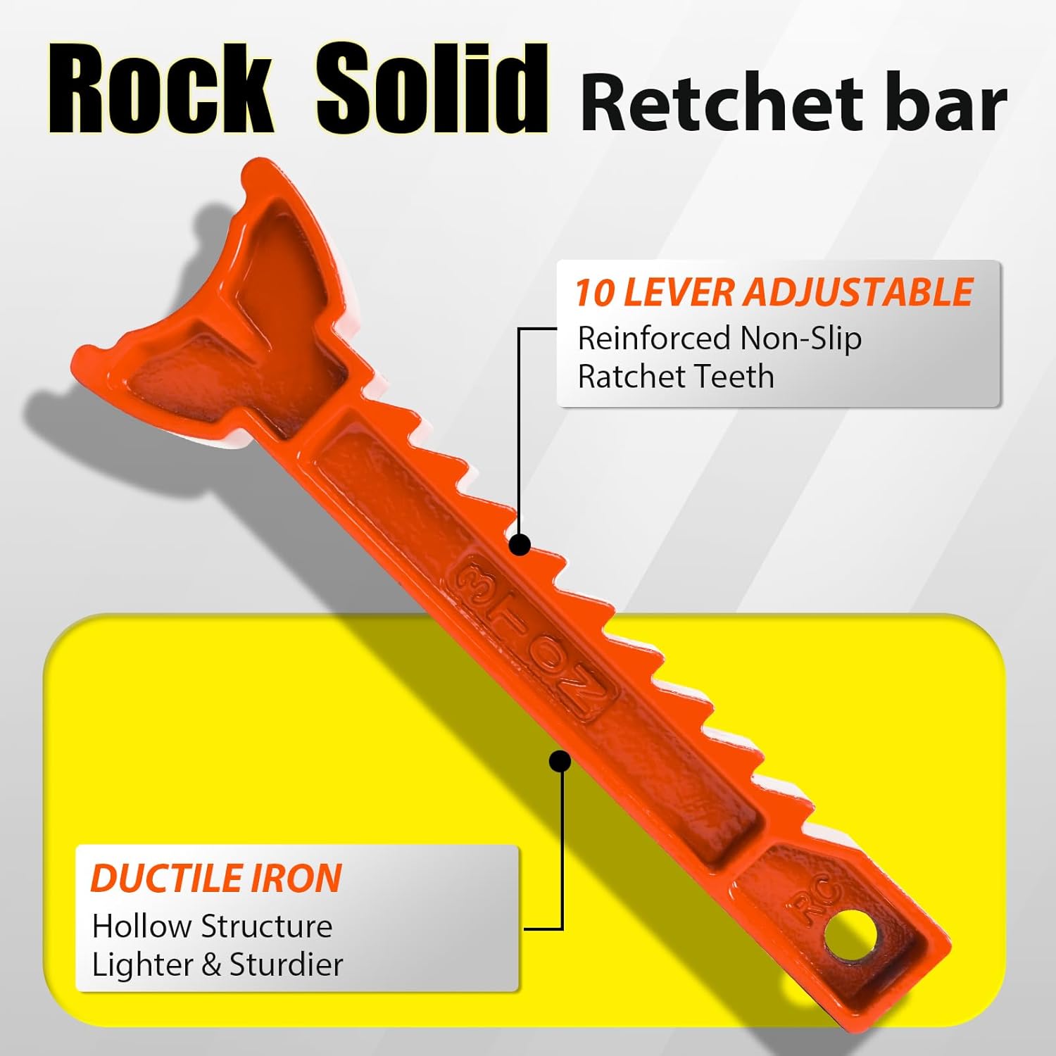 - ăAdjustable Ratchet Bară: The multi-position ratchet bar is made of high-quality cast ductile iron, thickened and forged in one piece, which is durable and not easy to break. The ratchet bar adopts a serrated design, which can be easily and quickly adjusted to the required height and locked in place, allowing DYI enthusiasts or mechanics to maintain or repair cars safely and happily