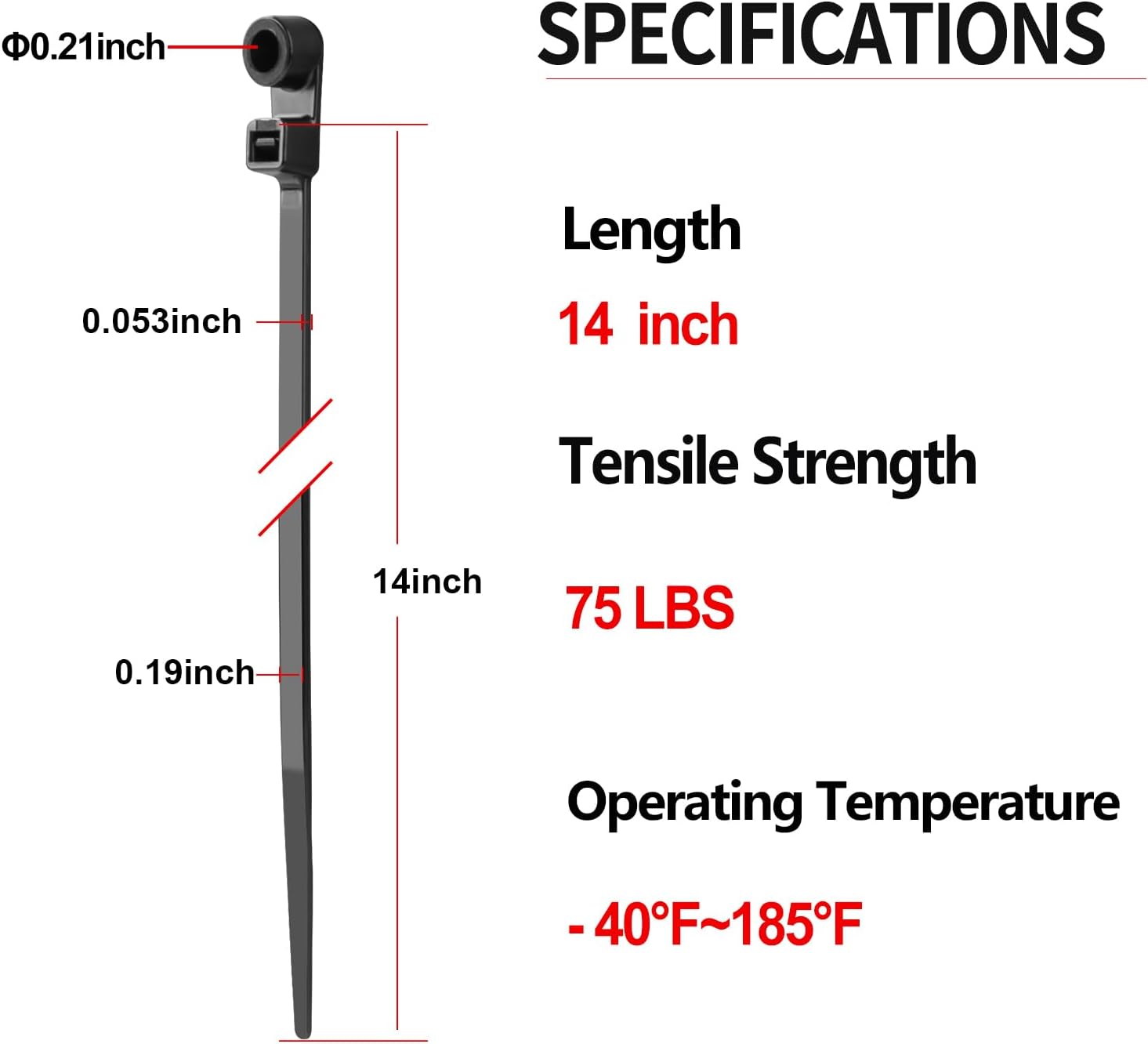 - 【High tensile strength】The length of 200pcs Screw zip ties is 14 inch and the width is 0.2inch. Heavy Duty Cable Ties with supporting up to 70LBS Strong Tensile Strength.