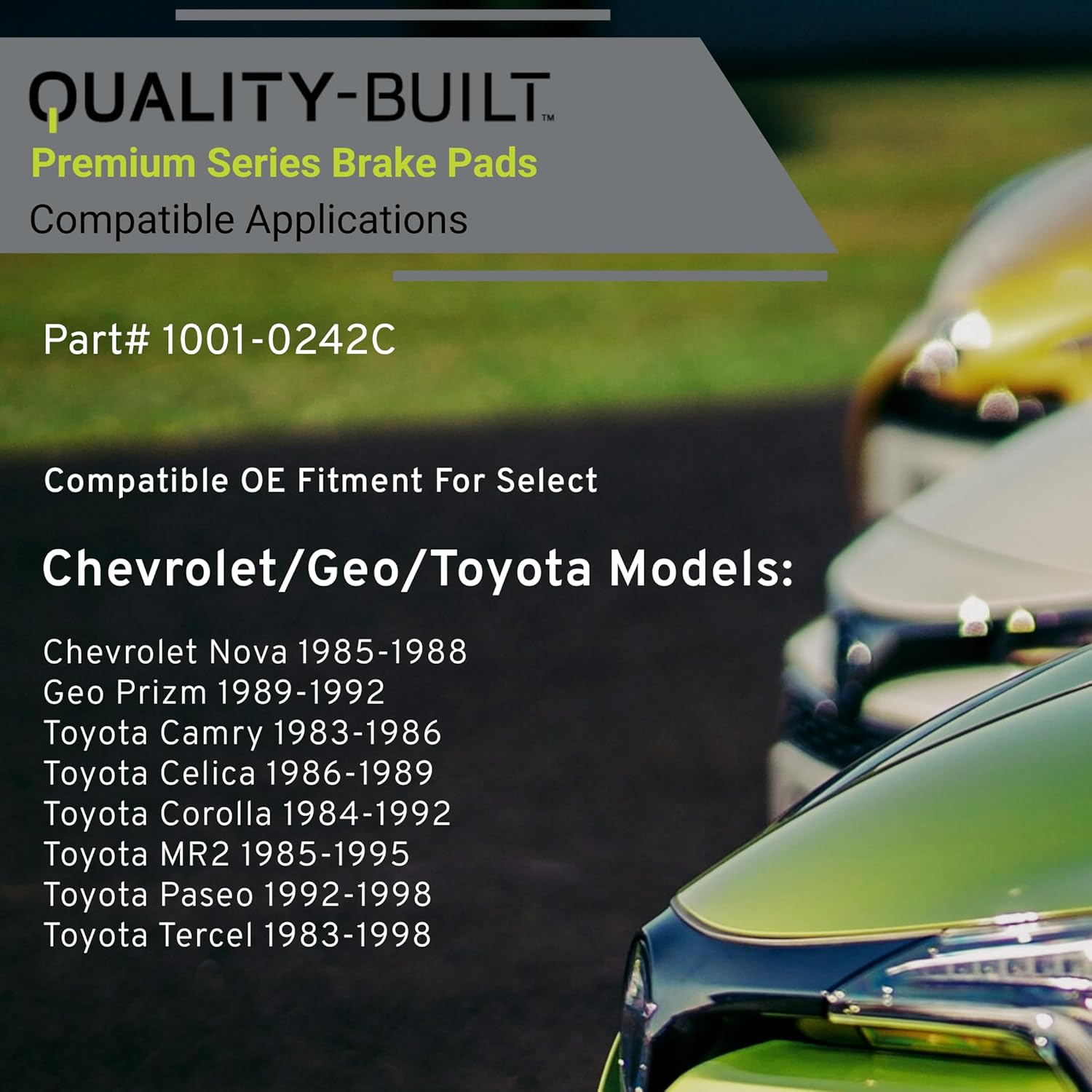 - VEHICLE FITMENT LIST: Chevrolet Nova 1988-1985, Geo Prizm 1992-1989, Toyota Camry 1986-1983, Celica 1989-1986, Corolla 1992-1984, MR2 1989-1985, MR2 1995-1991, Paseo 1998-1992, Tercel 1998-1983 (PART#1001-0242C)