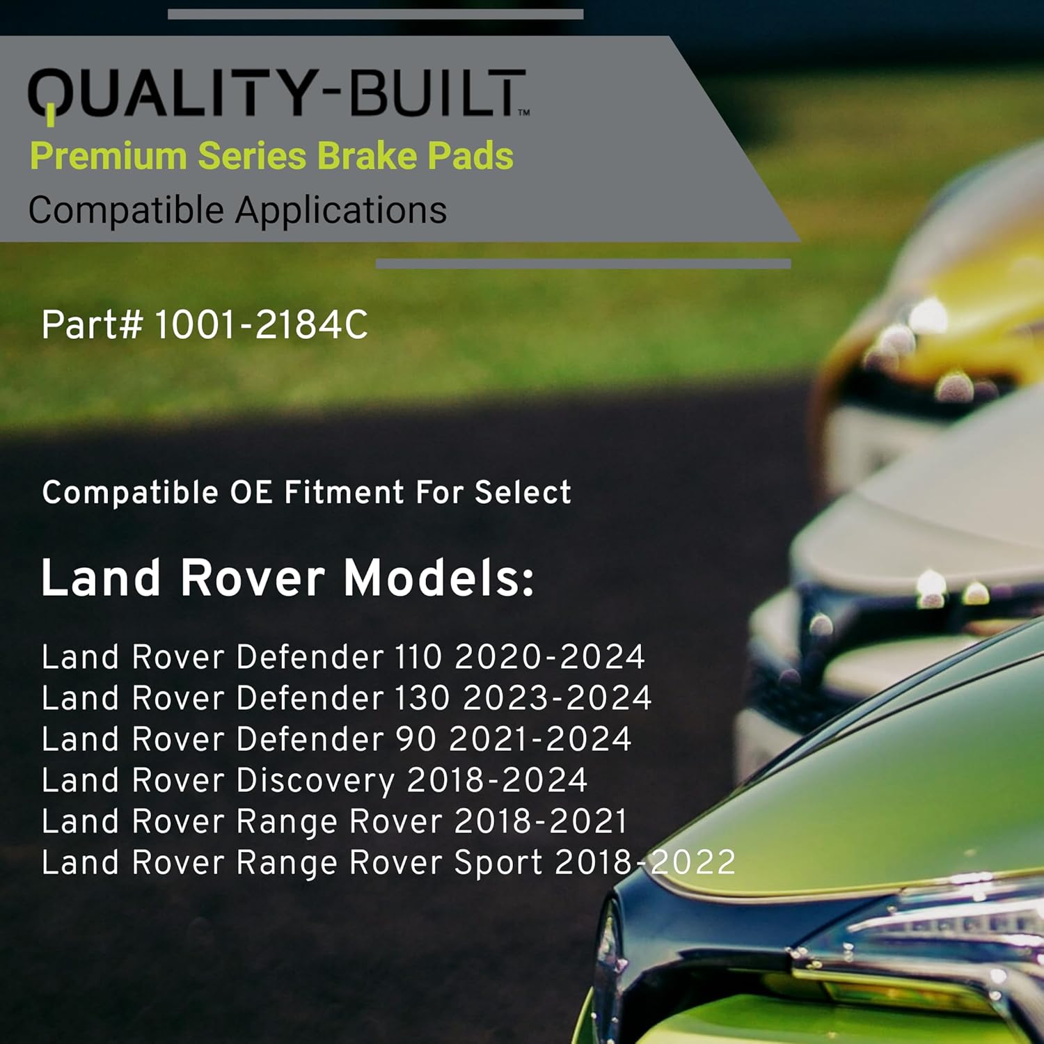 Premium Ceramic Front Brake Pads (1001-2184C) Compatible with 2018-2024 Land Rover (Defender 110/Defender 130/Defender 90/Discovery/Range Rover/Range Rover Sport)