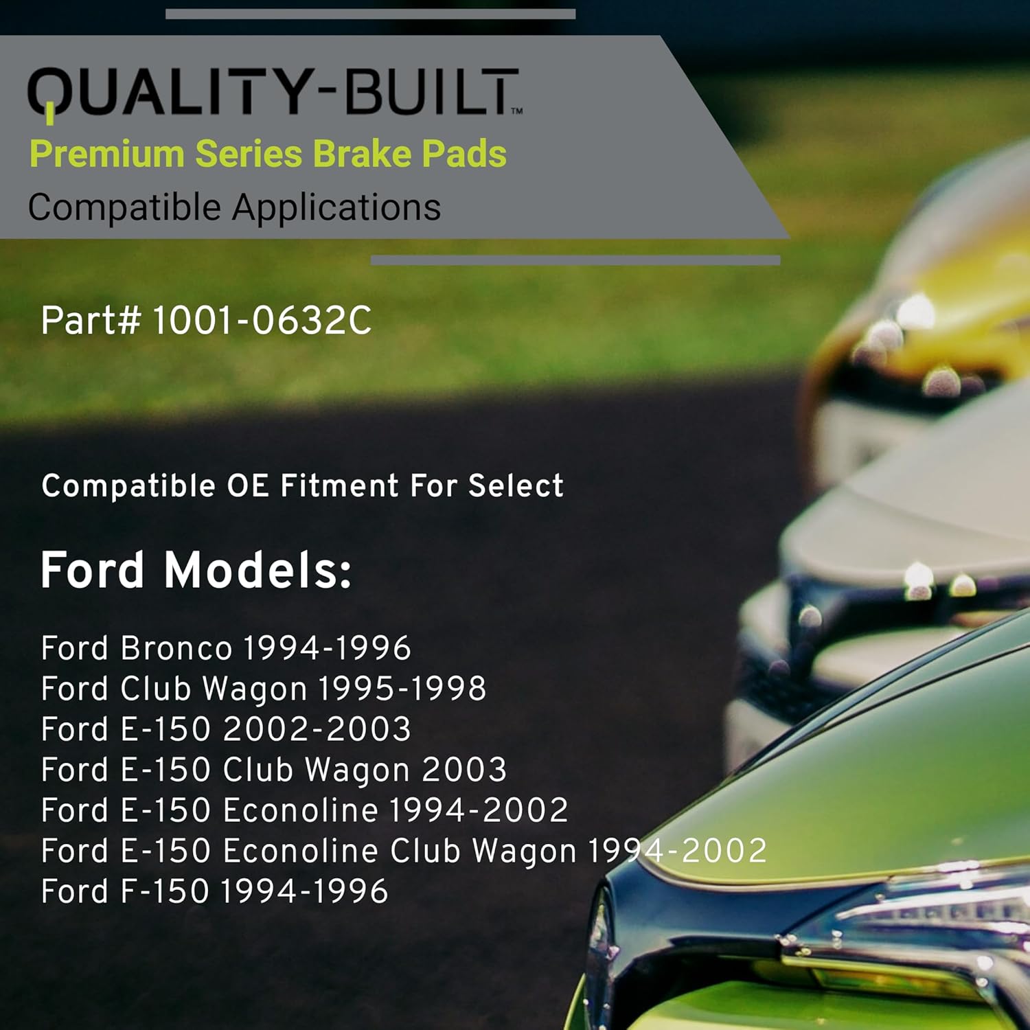Premium Ceramic Front Brake Pads (1001-0632C) Compatible with 1994-2003 Ford (Bronco/Club Wagon/E-150/E-150 Club Wagon/E-150 Econoline/E-150 Econoline Club Wagon/F-150)