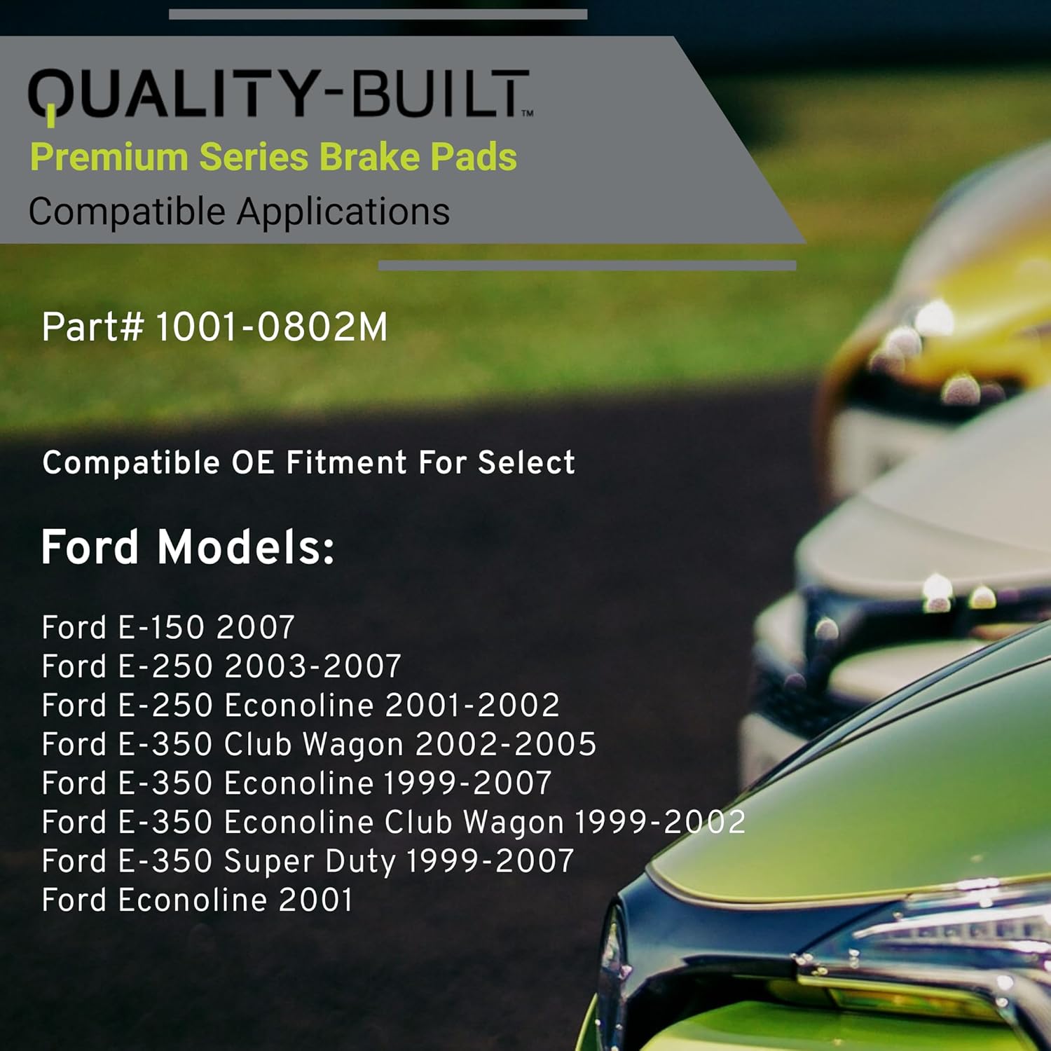 Premium Semi-Metallic Rear Brake Pads (1001-0802M) Compatible with 1999-2007 Ford (E-150/E-250/E-250 Econoline/E-350 Club Wagon/E-350 Econoline/E-350 Super Duty & More)