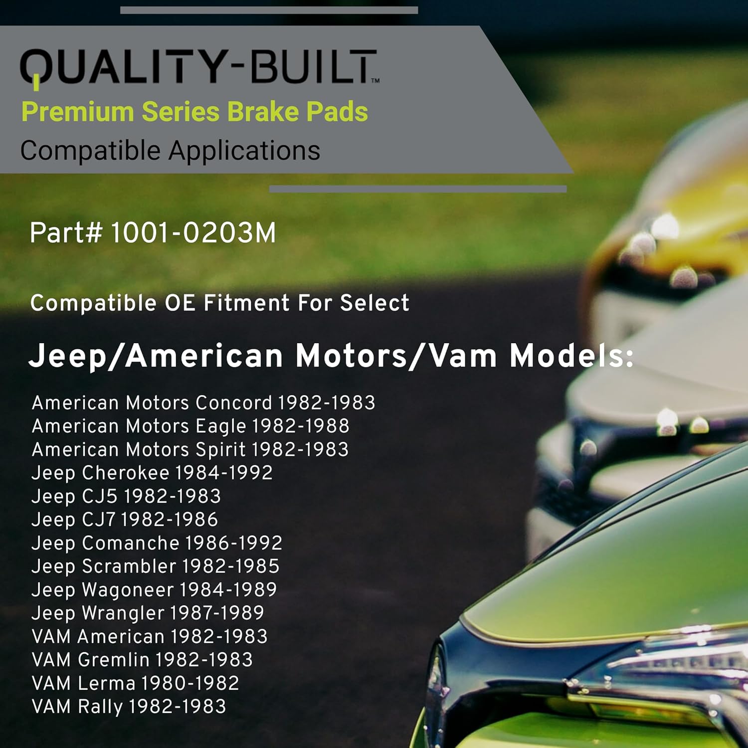 Premium Semi-Metallic Front Brake Pads (1001-0203M) Compatible with 1980-1992 American Motors/Jeep/VAM (Cherokee/CJ5/CJ7/Comanche/Concord/Eagle/Spirit/Wagoneer/Wrangler & More)