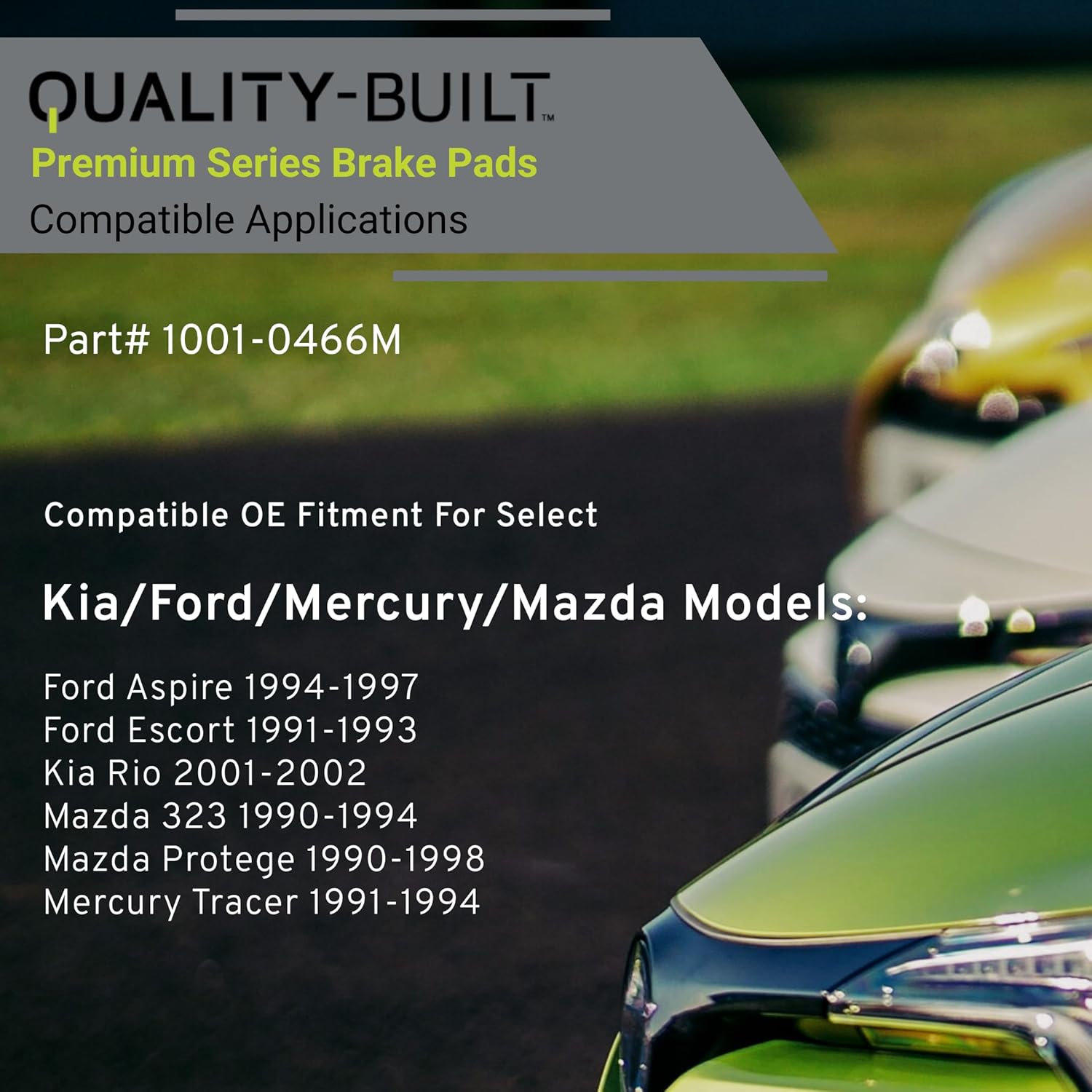 Premium Semi-Metallic Front Brake Pads (1001-0466M) Compatible with Ford Aspire 1997-1994, Escort 1993-1991, Kia Rio 2002-2001, Mazda 323 1994-1990, Protege 1998-1990 & More