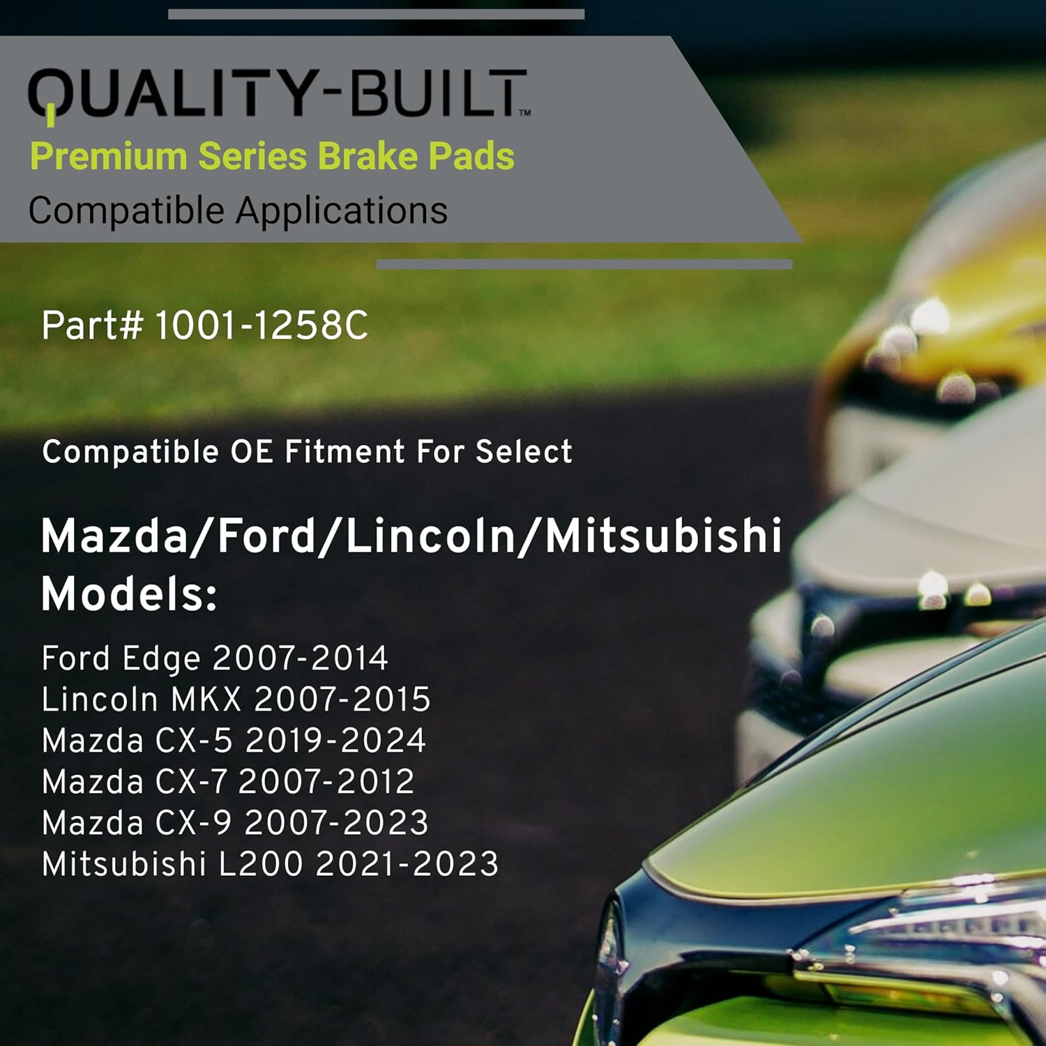 Premium Ceramic Front Brake Pads (1001-1258C) Compatible with Ford Edge 2014-2007, Lincoln MKX 2015-2007, Mazda CX-5 2024-2019, CX-7 2012-2007, CX-9 2023-2007, Mitsubishi L200 2023-2021