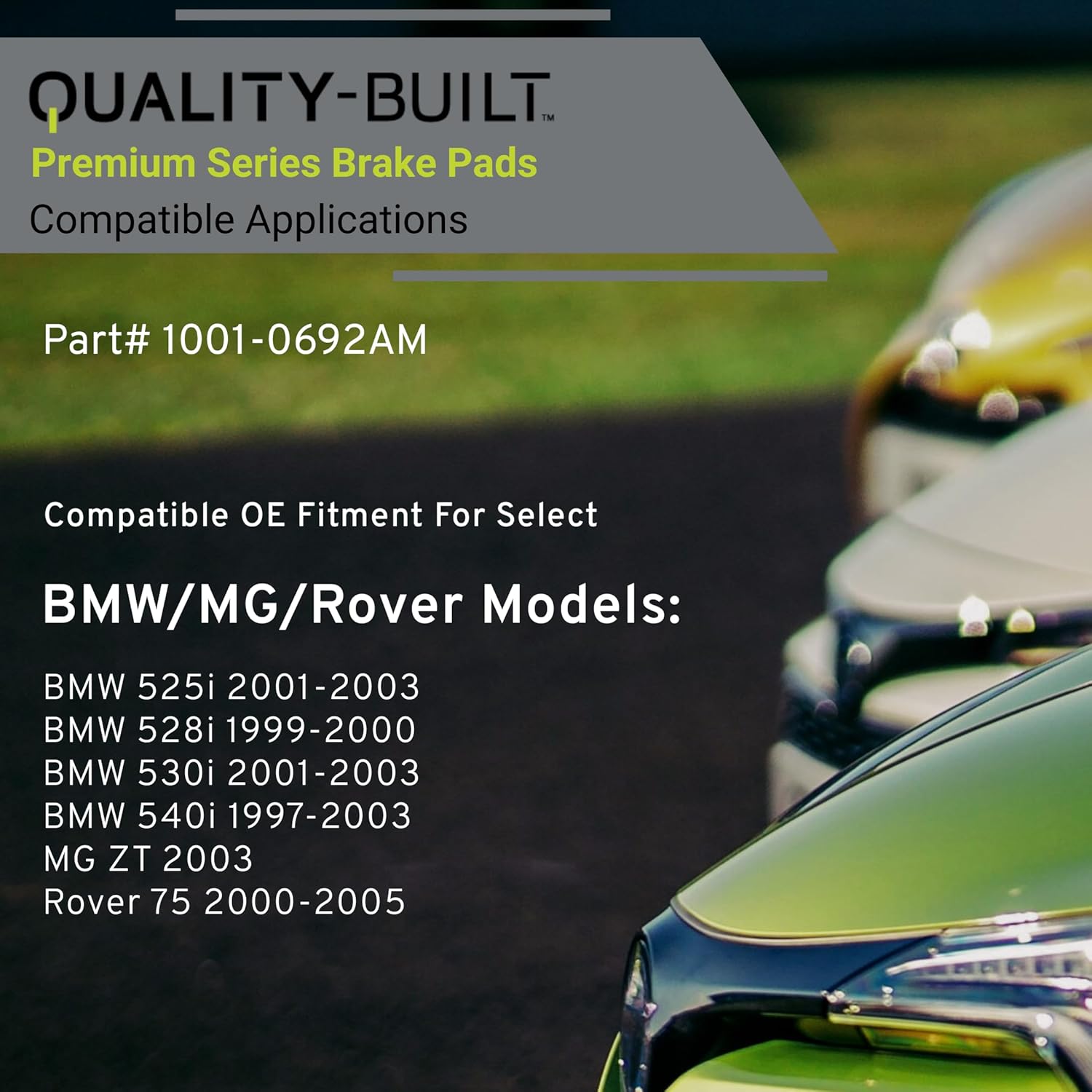 Premium Semi-Metallic Rear Brake Pads (1001-0692AM) Replacement for BMW 525i 2003-2001, 528i 2000-1999, 530i 2003-2001, 540i 2003-1997, MG ZT 2003, Rover 75 2000, 75 2005-2003