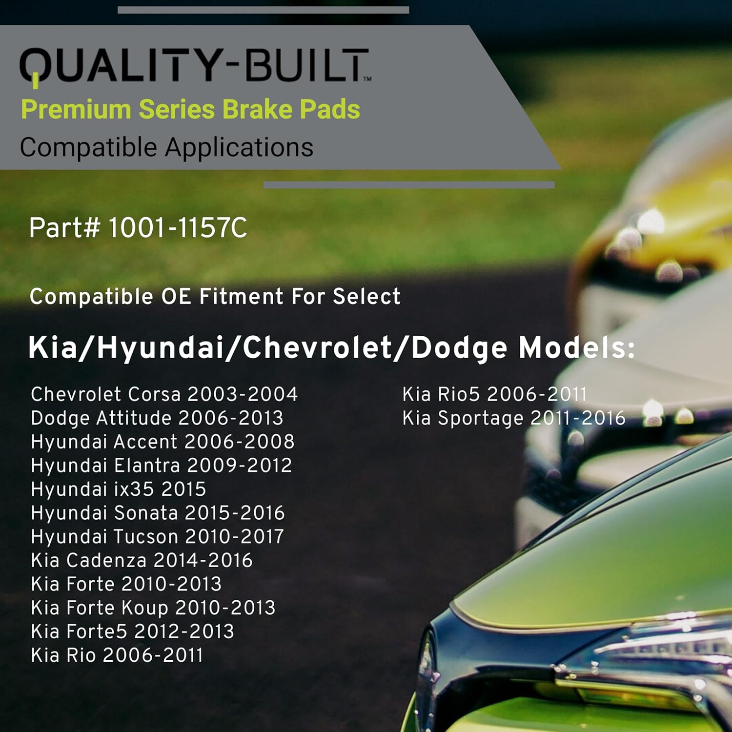 Premium Ceramic Rear Brake Pads (1001-1157C) Compatible with 2003-2017 Chevrolet/Dodge/Hyundai/Kia (Accent/Attitude/Cadenza/Corsa/Elantra/Forte/Forte Koup/Forte5/ix35/Rio/Rio5/Sonata)
