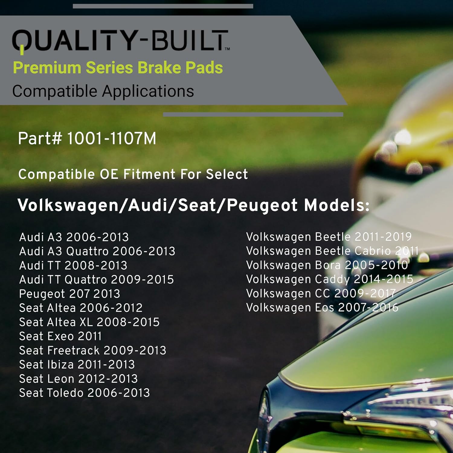 Premium Semi-Metallic Front Brake Pads (1001-1107M) Compatible with 2005-2019 Audi/Volkswagen (A3 Quattro/Beetle/GLI/Golf/Golf SportWagen/GTI/Ibiza/Jetta/Leon/Passat/Polo & More)