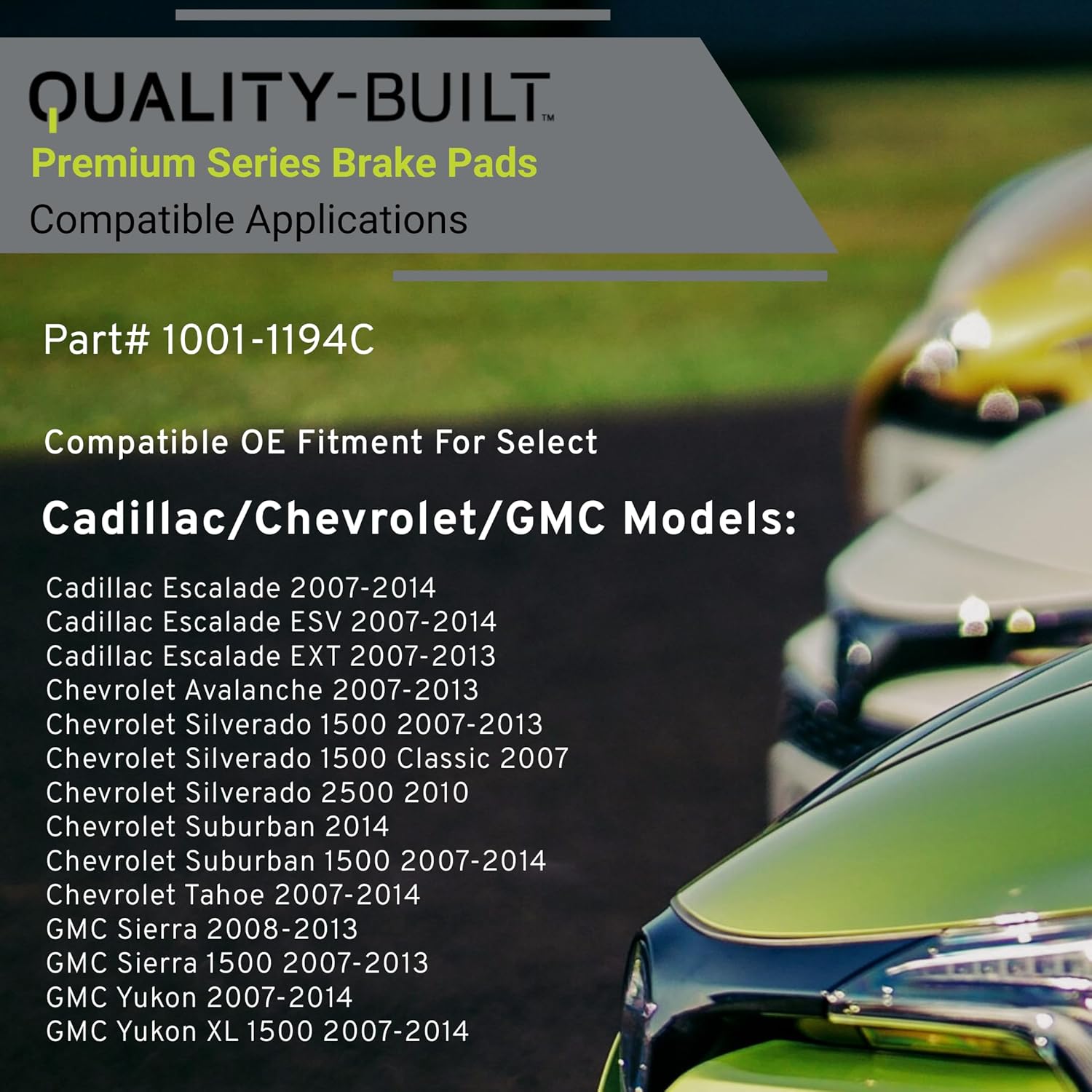 Premium Ceramic Rear Brake Pads (1001-1194C) Compatible with 2007-2014 Cadillac/Chevrolet/GMC (Avalanche/Escalade/Escalade ESV/Escalade EXT/Sierra/Silverado/Suburban/Tahoe/Yukon & More)