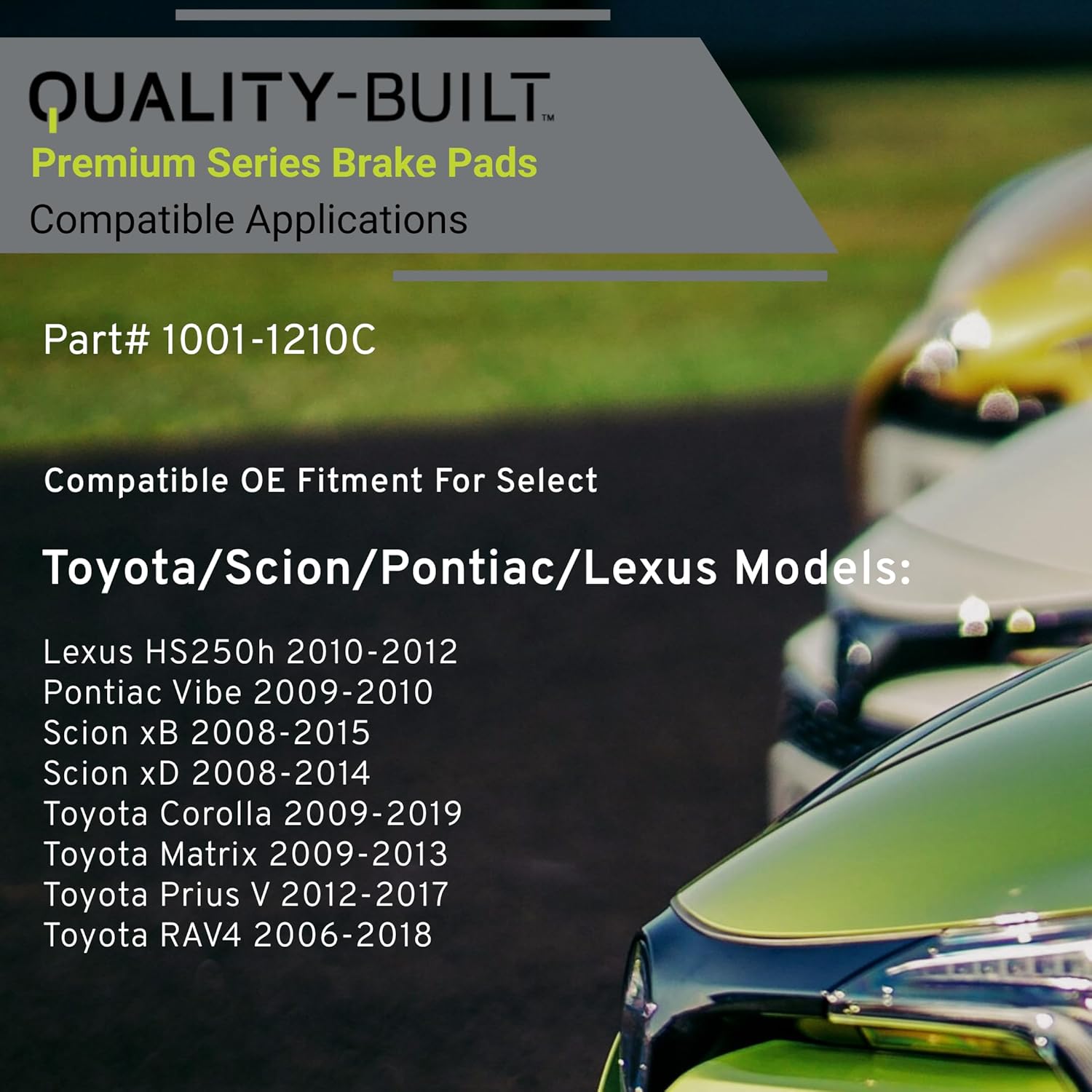 Premium Ceramic Front Brake Pads (1001-1210C) Compatible with 2006-2019 Lexus/Pontiac/Scion/Toyota (Corolla/HS250h/Matrix/Prius V/RAV4/Vibe/xB/xD)