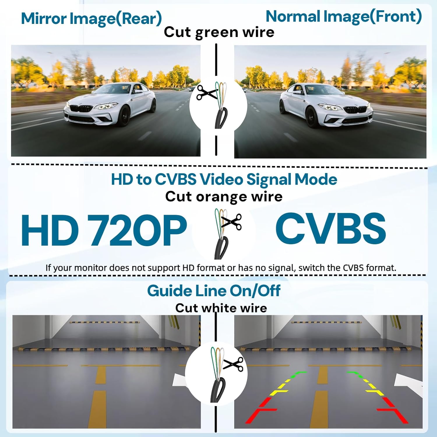 - Crystal Clear Image & Fashion Design: Equipped with a 600TVL HD image sensor and a 149-degree wide-angle lens. HD clear picture equipped with advanced night vision technology. The default setting of this vehicle backup camera is HD Rear View, support NTSC switch. Support front/rear camera & guide line On/Off