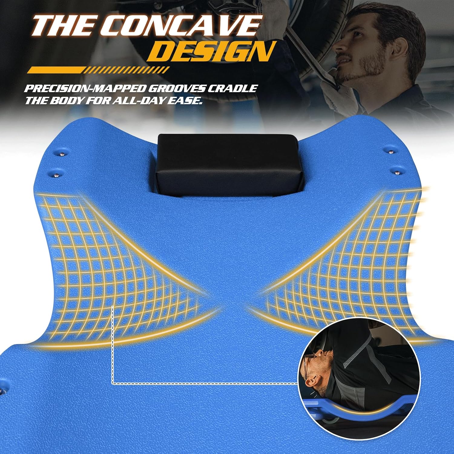 Magshion Mechanic Creeper with Padded Headrest & Tool Trays – 440 lbs Capacity, Rolling Garage Creeper with 6 Swivel Wheels, Lightweight & Portable Under Car Creeper for Auto Repair (Blue)