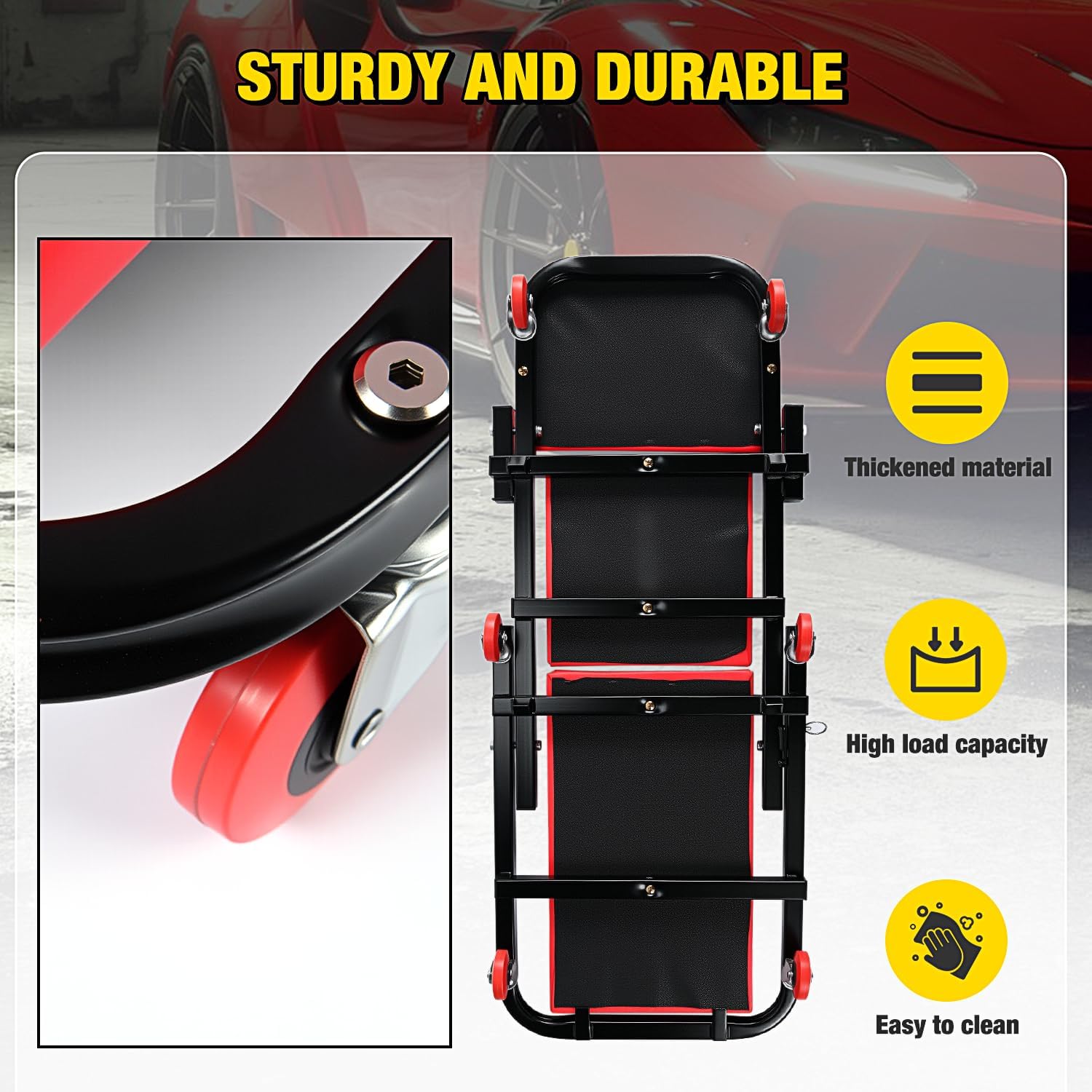 Nilight 40" Z Creeper - 2-in-1 Folding Rolling Mechanic Seat, 40 inches Adjustable Lay-Down or Sit Garage Chair, 330 lbs Capacity, Red Black