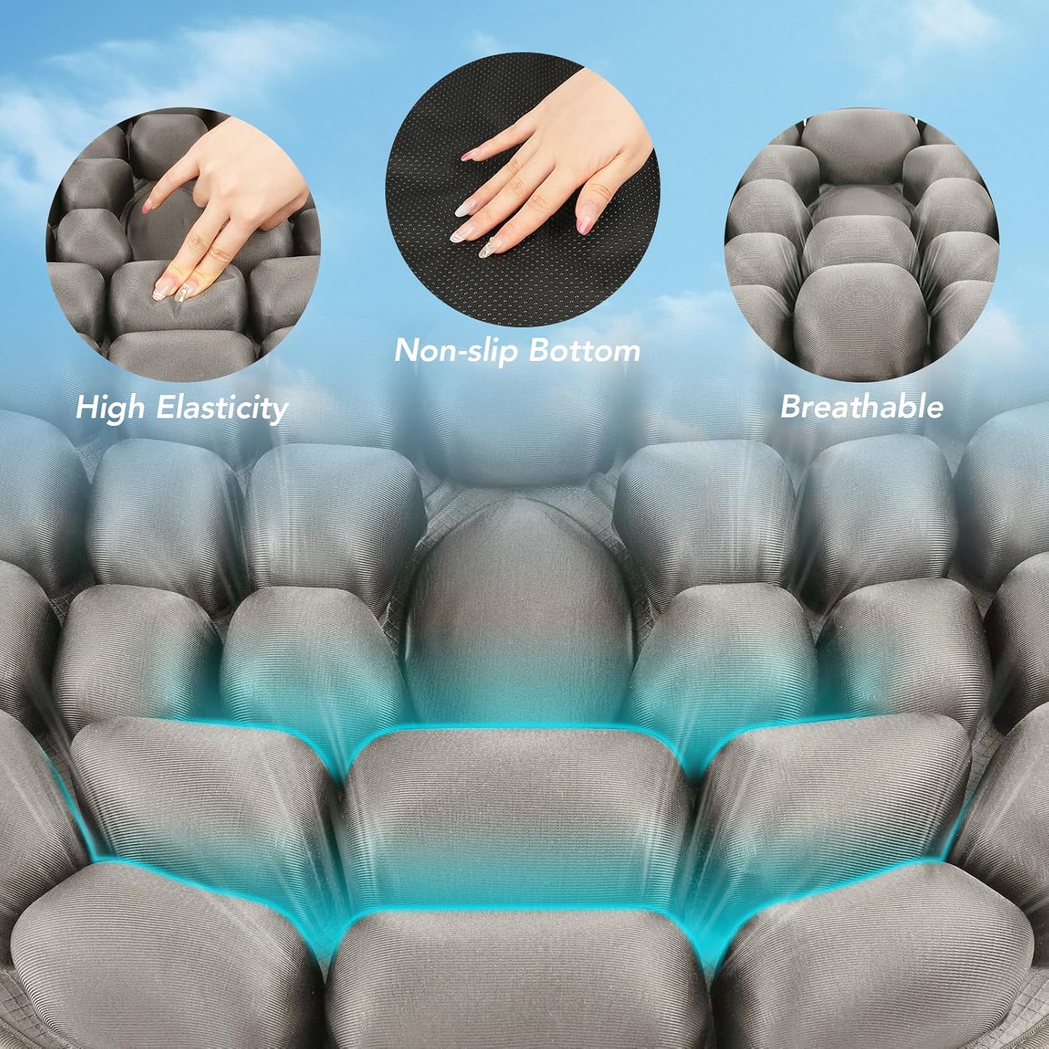- Ultra-Durable & Heavy-Duty Support: Air cushion Crafted with Reinforced Lycra+TPU hybrid material withstands 441 lbs (200 kg), surpassing competitors’ limits. Machine-washable with anti-slip silicone particles for stability on any surface—no leaks or bursts, even under prolonged use