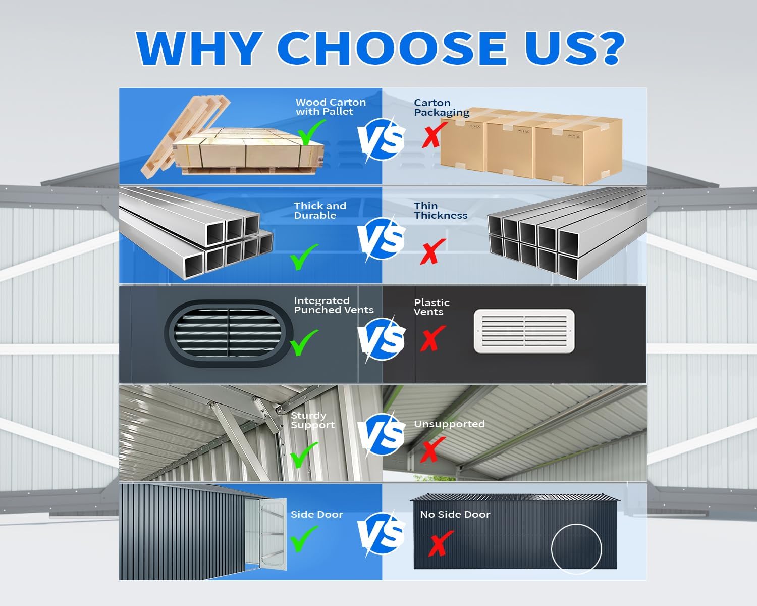- 🏡 Strong & Durable Construction: Built with galvanized steel reinforcement, this 20x10 storage shed is rustproof, UV-resistant, and moisture-proof. Reinforced thick metal beams and braces provide robust roof support, ensuring garage shed can withstand harsh weather and serve you for years to come.