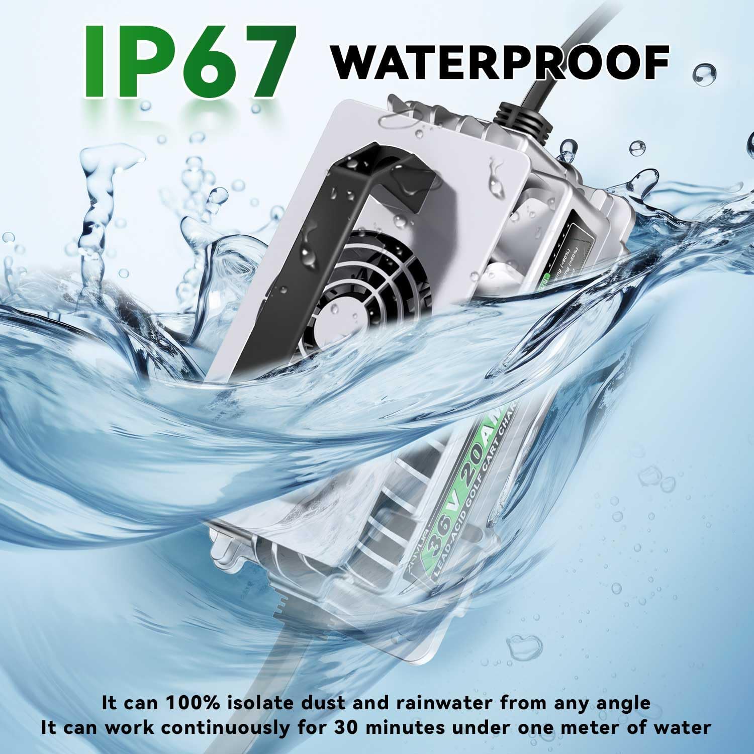 - 【Dust & Waterproof】 Having the IP67 Protection level,this charger can be used in rainy and dusty weather or other inclement weather.