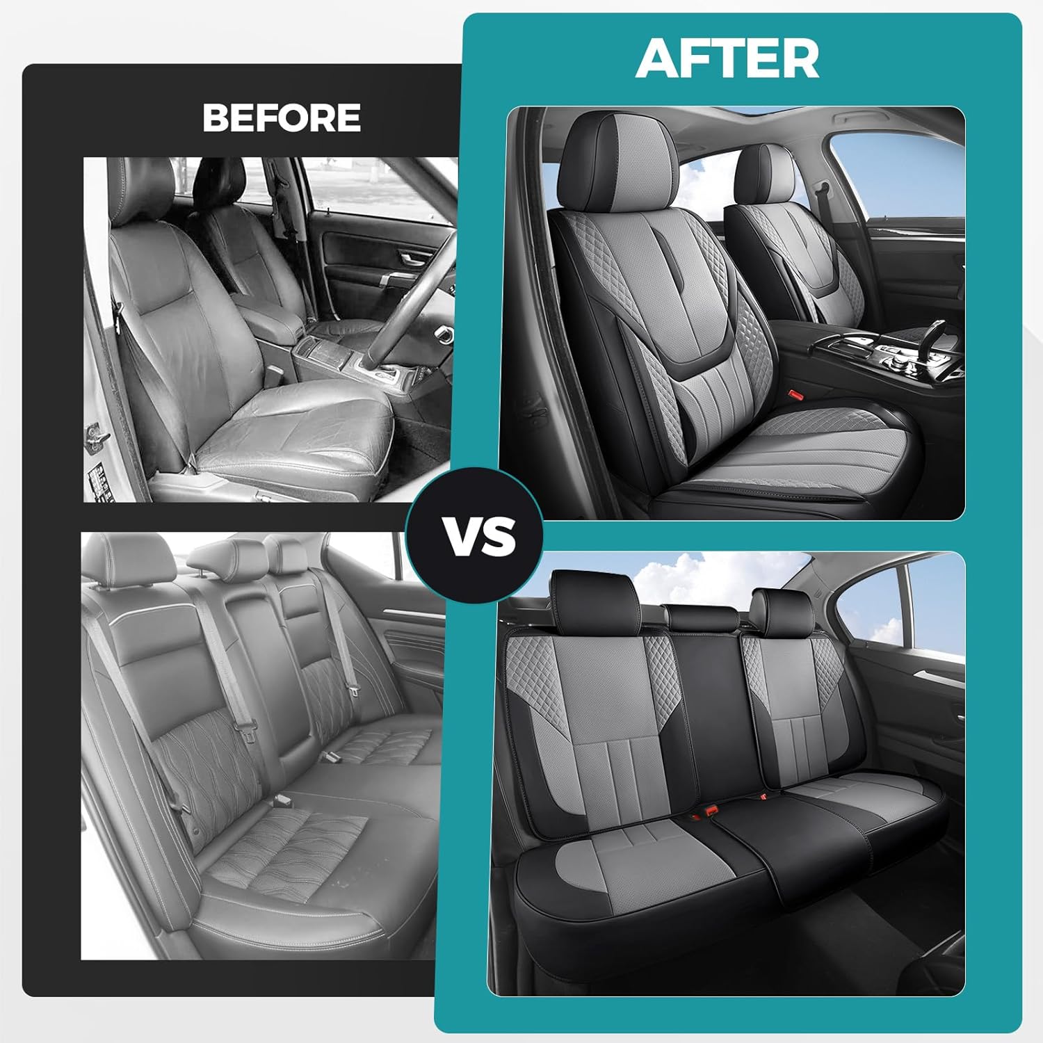 Car Seat Covers Full Set - Universal Seat Covers for Cars SUV Truck – Faux Leather Automotive Seat Covers, Breathable & Waterproof Front and Rear Seat Protectors, Fit for Most Cars-BlackGrey