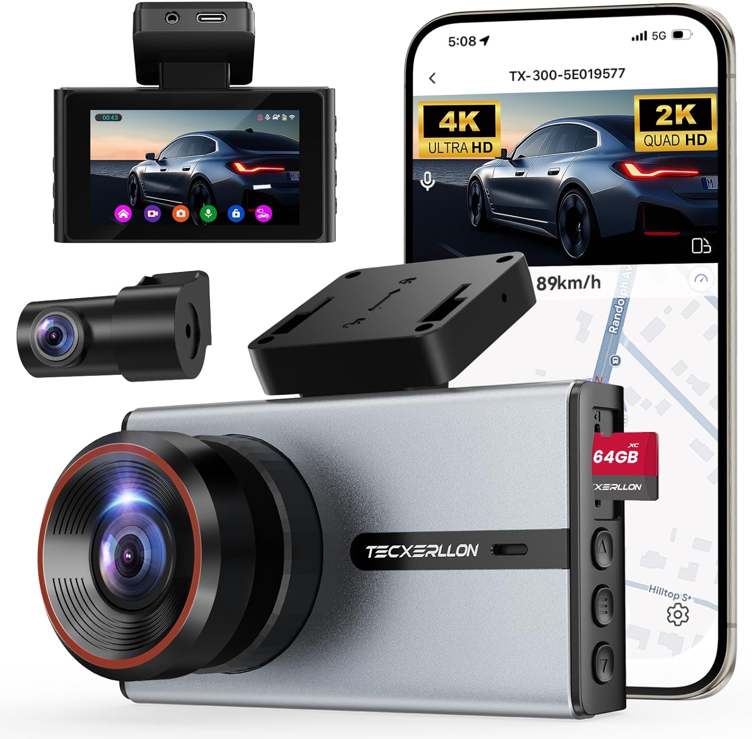 - 【4K Front + 2K Rear Dash Cam | Ultra-High Clarity in Every Frame】Capture razor-sharp footage with a 4K front camera and 2K rear camera combo. This dash cam front and rear setup records every license plate and road detail with stunning precision—ideal for daily driving, rideshare jobs, or family road trips. A must-have dash camera for cars looking for superior image quality.
