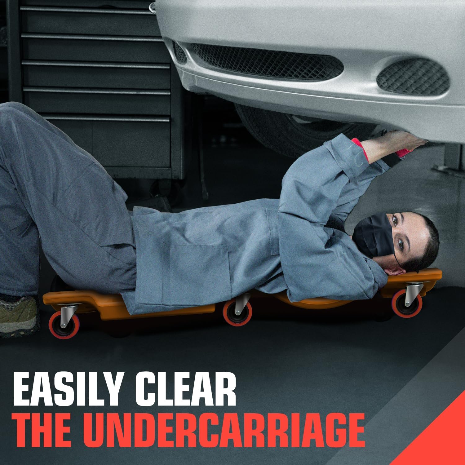 DNA MOTORING 36" L X 17" W x 4.25" H Vehicle Repair Low Profile Automotive Creeper w/Padded Headrest, Orange, TOOLS-00201-OG