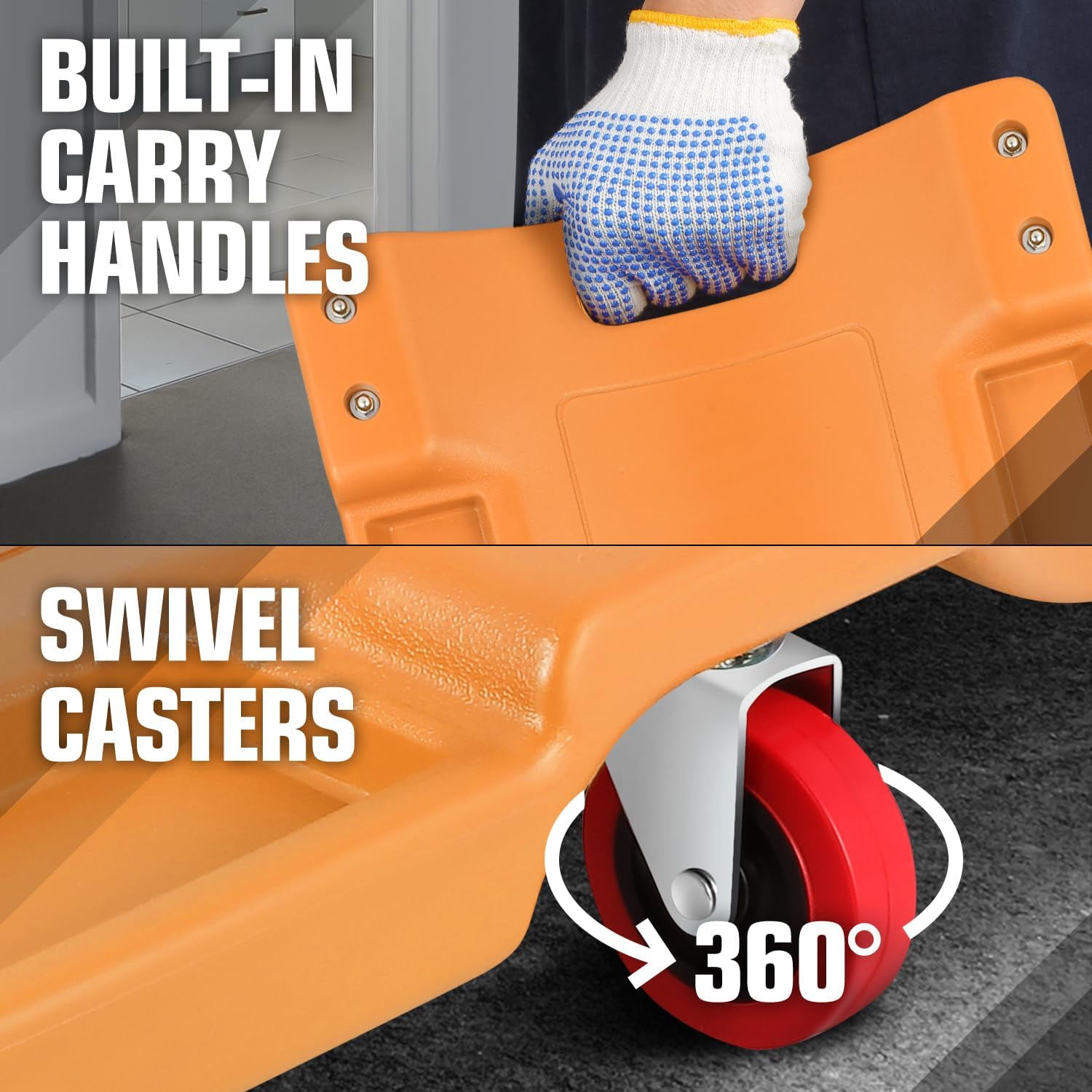 - 36" Long X 17" Wide X 4.25" H Overall Size; 6 X 2.5" Diameter Non Marring Polyurethane Swivel Caster Wheels; Low Profile 4.25" Height for Increased Clearance Under Vehicle