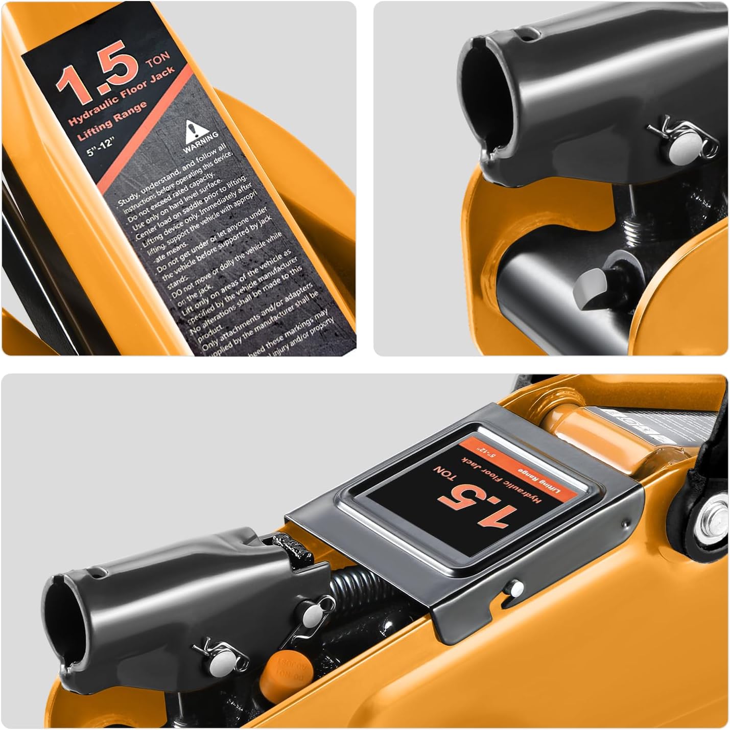 - SPEEDY LIFT GARAGE JACK - This Hydraulic Trolley Jack features a 1.5 ton (3,000 lb) capacity with a min lifting height of 5.3" and a max height of 12". Allows you to easily lift the jack up to desired height, Great for garage service and heavy-duty industrial use.