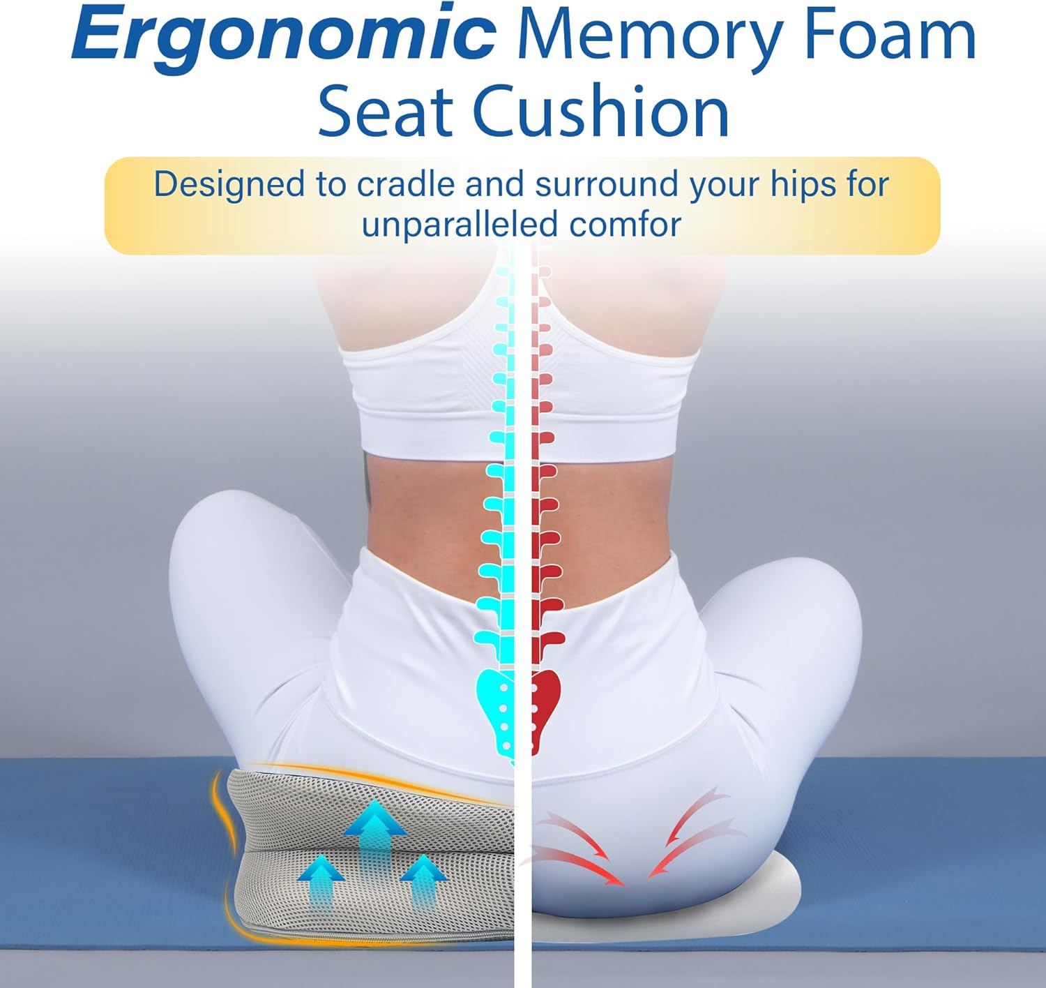 - Ergonomic Seat Cushion & Optimal Driving Comfort - Upgraded “U”shaped cushion is specially designed for comfy and health. Larger and thicker, perfectly cradles your butt, provides comprehensive support. High-density memory foam car seat cushion relieves sciatica, lower back, tailbone pain