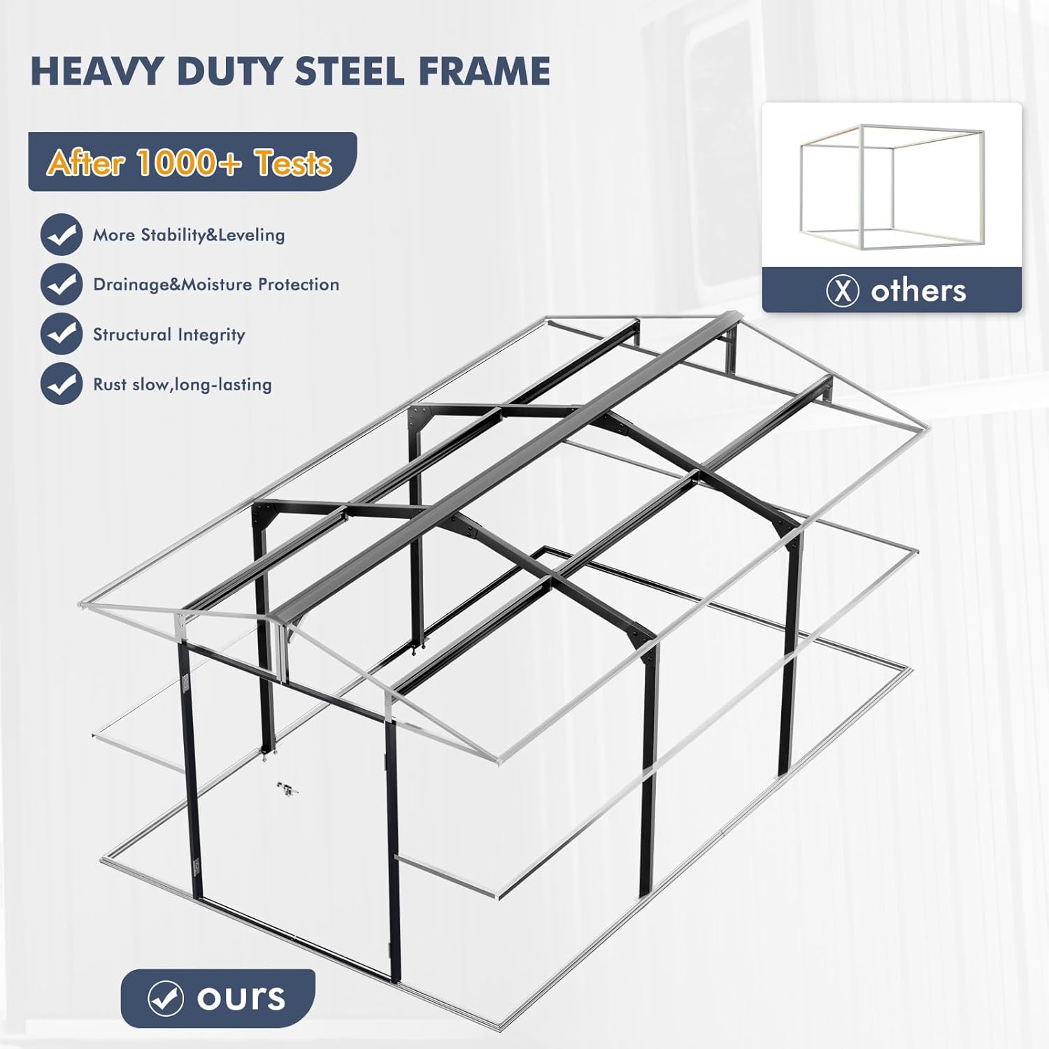 - Enhanced Aluminum Frame, Heavy Duty Shed- We added 2 aluminum frame and 3 beams inside to feinforced the construct of shed, ensuring a solid overall structure for windy snowy. Suitable for located where has variety weather