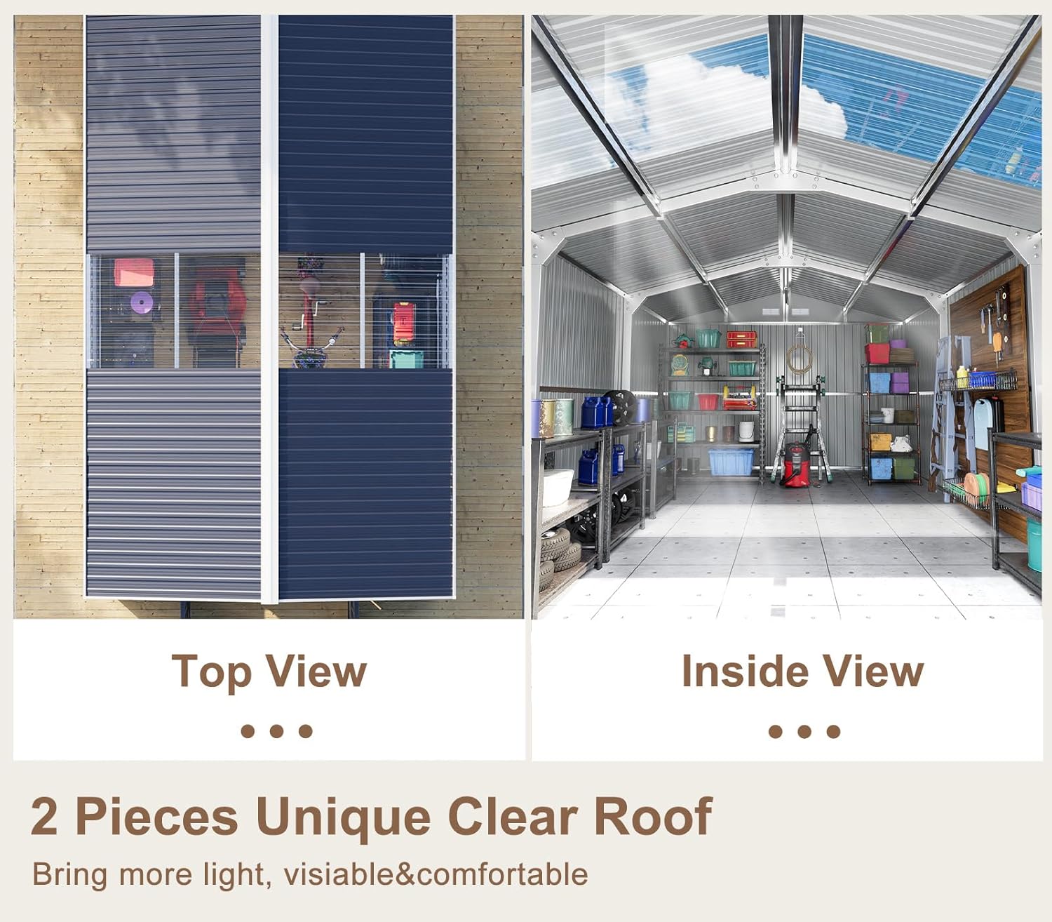 - 10x16 FT Extra Large Metal Shed- Provides spacious room for household yard tools,especially big tools like lawnmowers,wood chipper, broadcast spreader and bikes. More than just a storage shed, could be a cozy house for your pet. It adapts to various needs, making it an ideal companion for a range of outdoor activities with your family