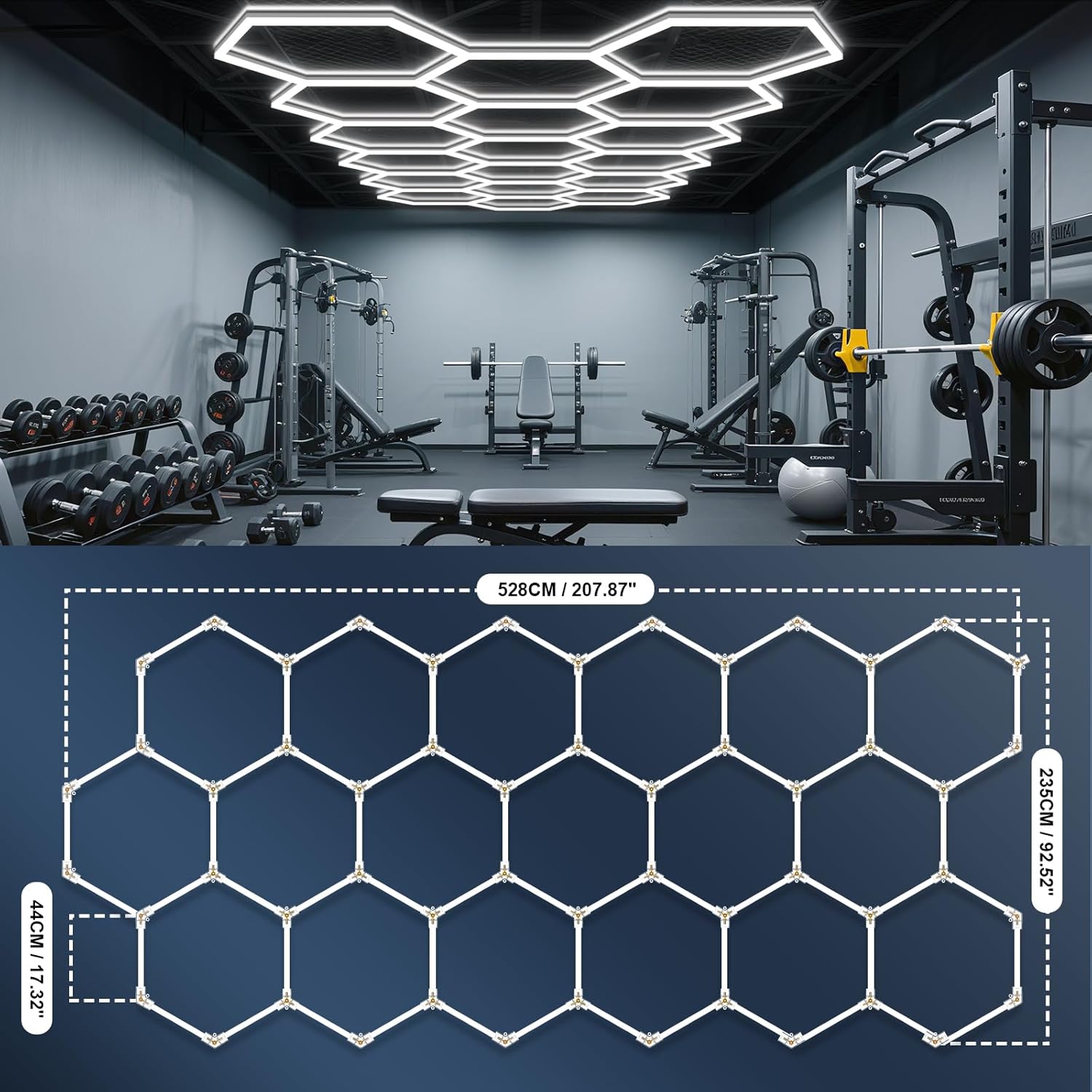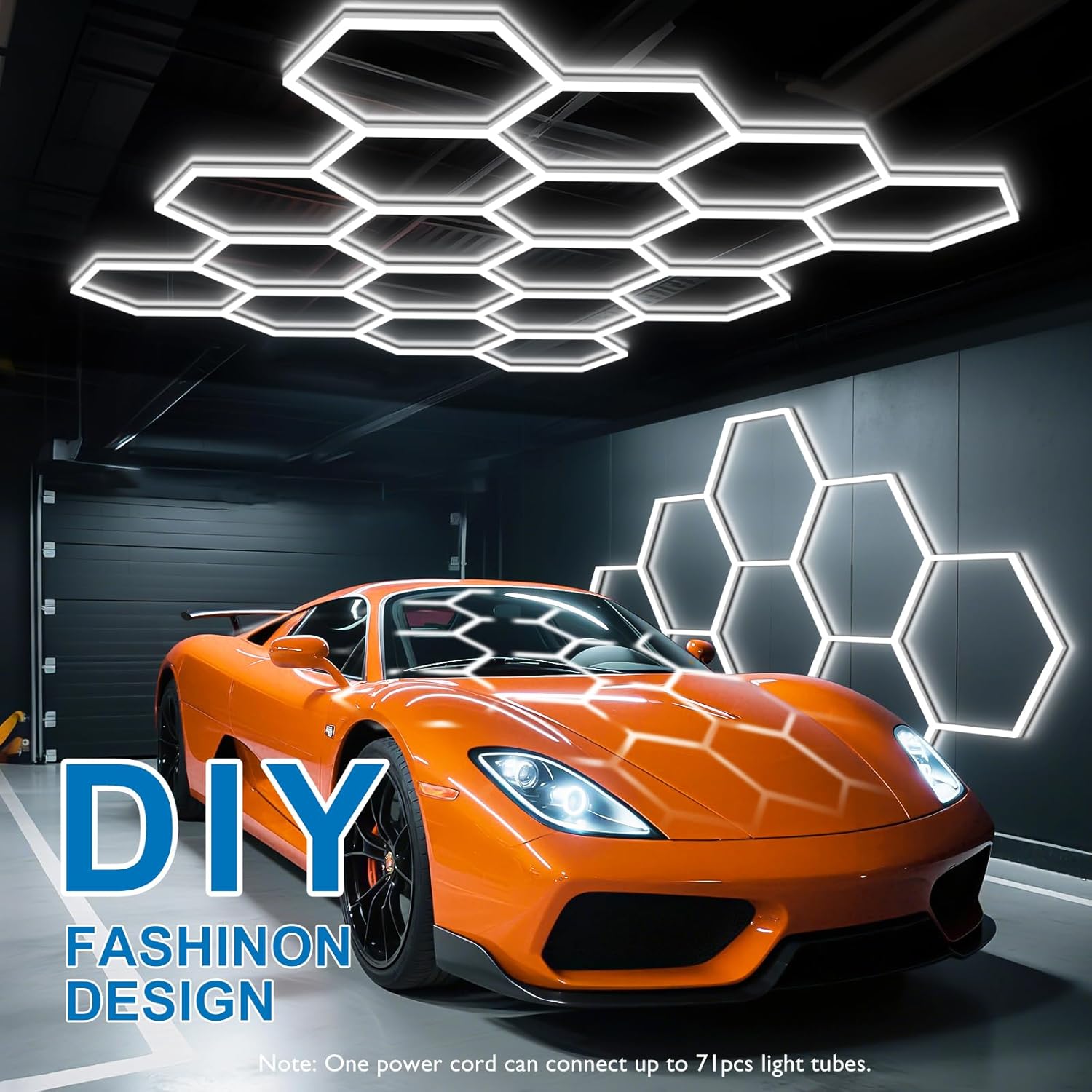 - High Brightness - This 568W hexagon car detailing light system with 6500K white light, produces an impressive brightness of 68160lm, can effectively light up a large area, ideal for garage, car repair shop, workshop, workbench, or gym