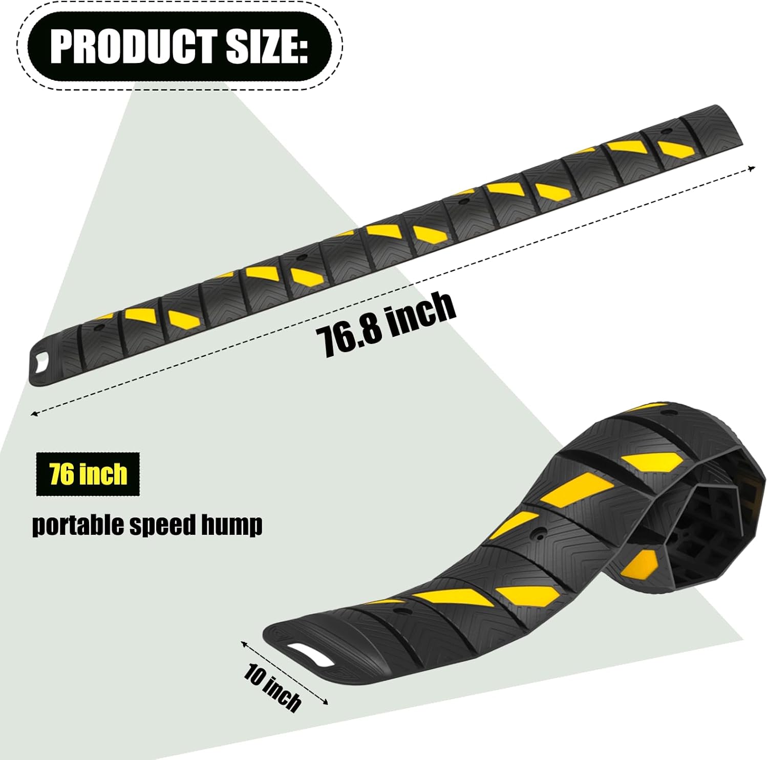 76"x10"x 2" Portable Rubber Speed Bump Reflective Yellow-Black,Quick to fold, Unfold, and Secure for Road use. Suitable for Asphalt Cement Gravel Roads Parking Lots garages Schools and Other Areas.
