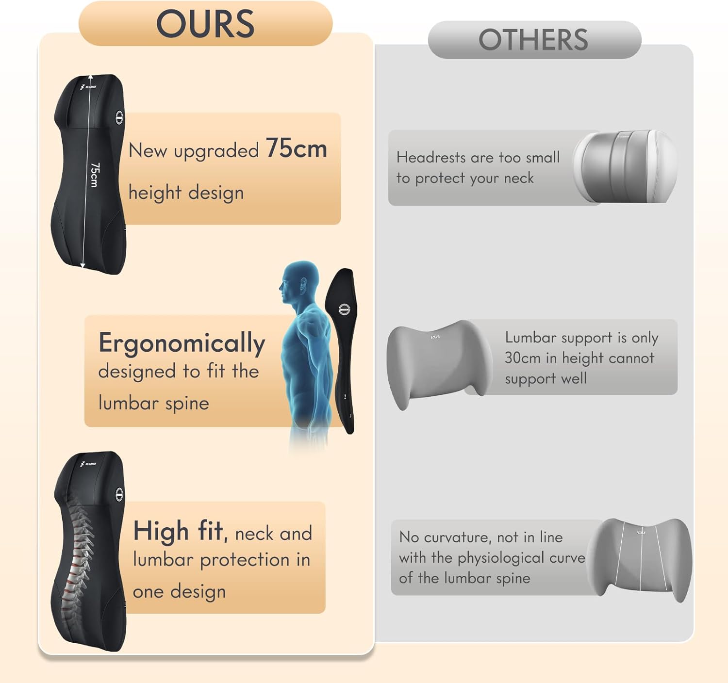 - 【Innovative 2-in-1 Design】Unlike traditional 12-inch lumbar supports with incomplete back coverage, our 29-inch integrated headrest and lumbar support pillow provides full-body support from head to whole back. Experience continuous comfort that cradles your entire spine without slipping while simultaneously supporting shoulders, neck, and lower back.