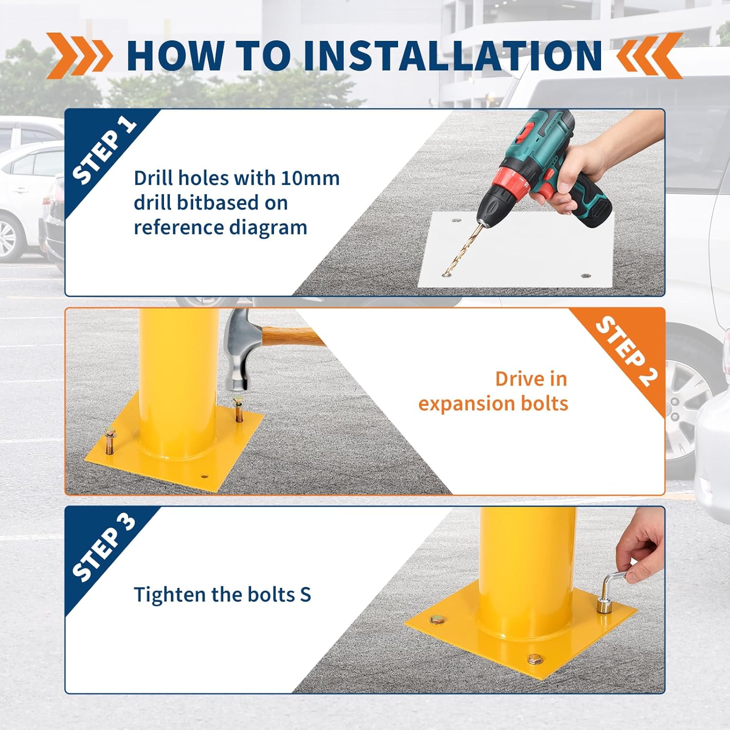 - Straightforward Setup: Installing this bollard post is simple.Just position, drill holes, insert the included anchor bolts, and tighten β no complex assembly required.